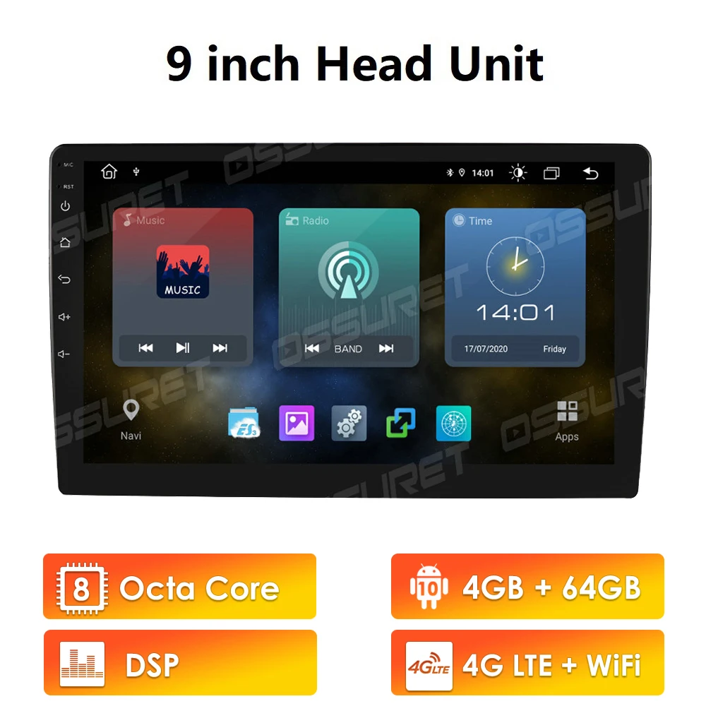 Автомобильный мультимедийный плеер, Android 10, восемь ядер, 4 Гб ОЗУ 64 Гб ПЗУ, экран 910 дюйма, GPS-навигация, поддержка DSP IPS Wifi 4G LTE SWC