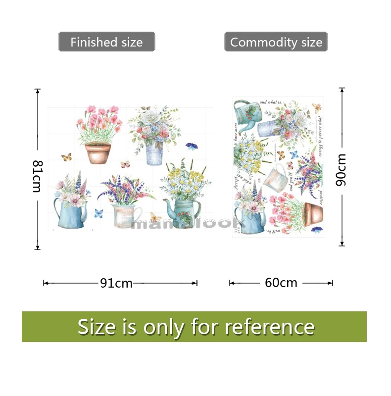 Цветочные наклейки на стену в горшке, домашний декор, лаванда, эвка...