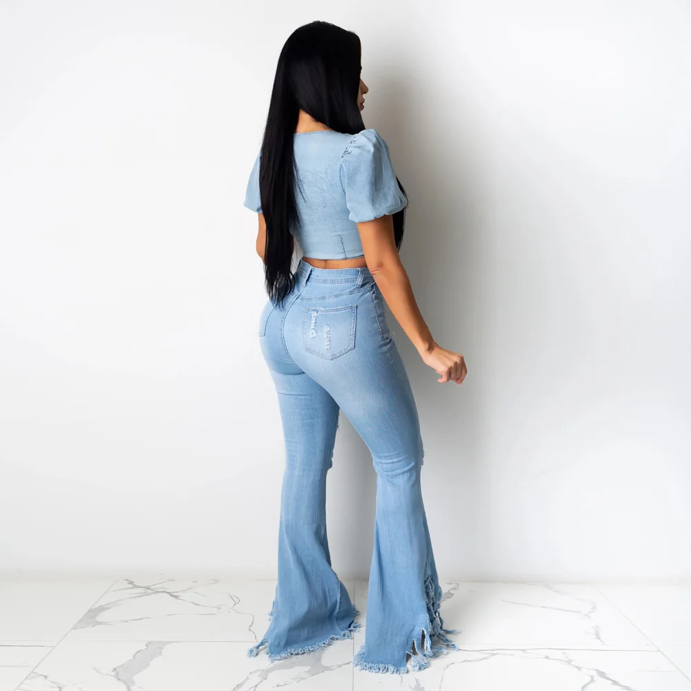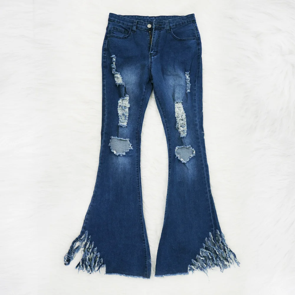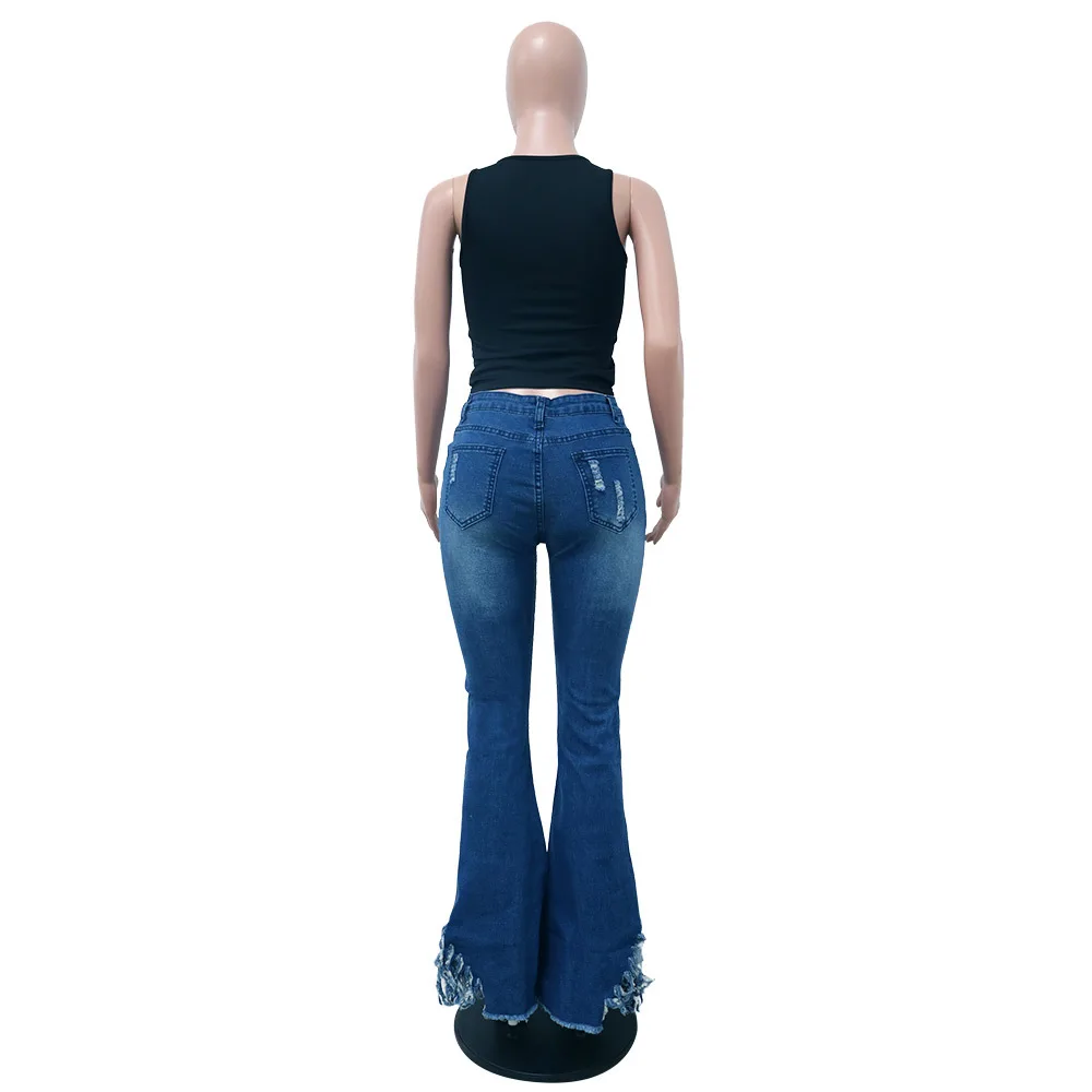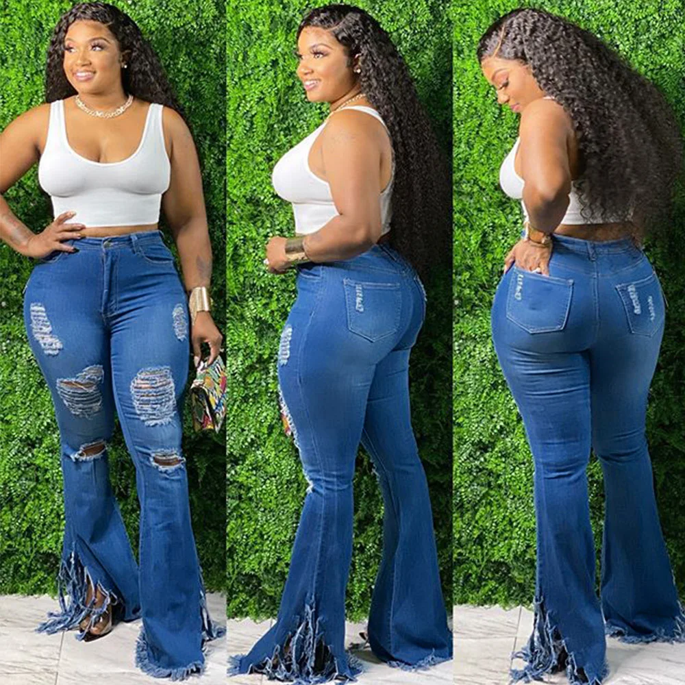 Женские рваные джинсы, расклешенные штаны с кисточками, с высокой талией, голубого цвета icon star icon star icon star icon star icon star