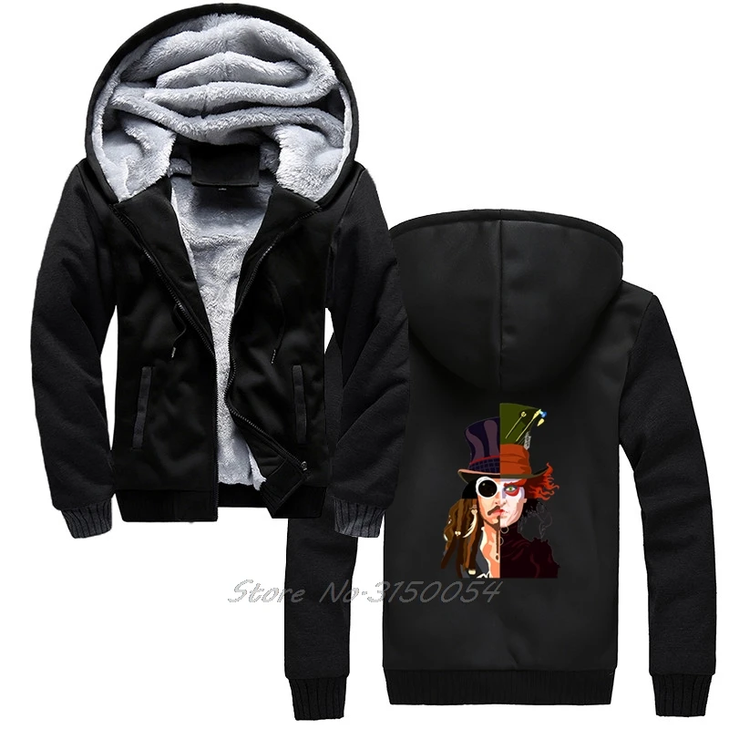 Шляпник Джонни Деппом Джека Воробья Толстовка для мужчин зимняя повседневная Утепленная зимняя теплая толстовка с принтом в уличном стиле