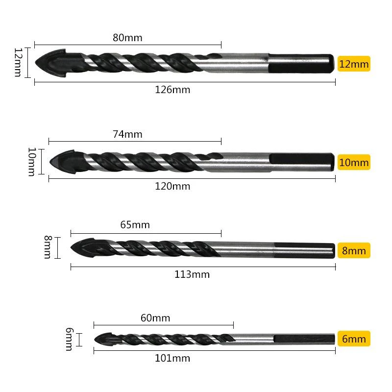 Сверла треугольное сверло из вольфрамовой стали, металлического сплава, 6-12 мм для керамической стены, стекла, бетона