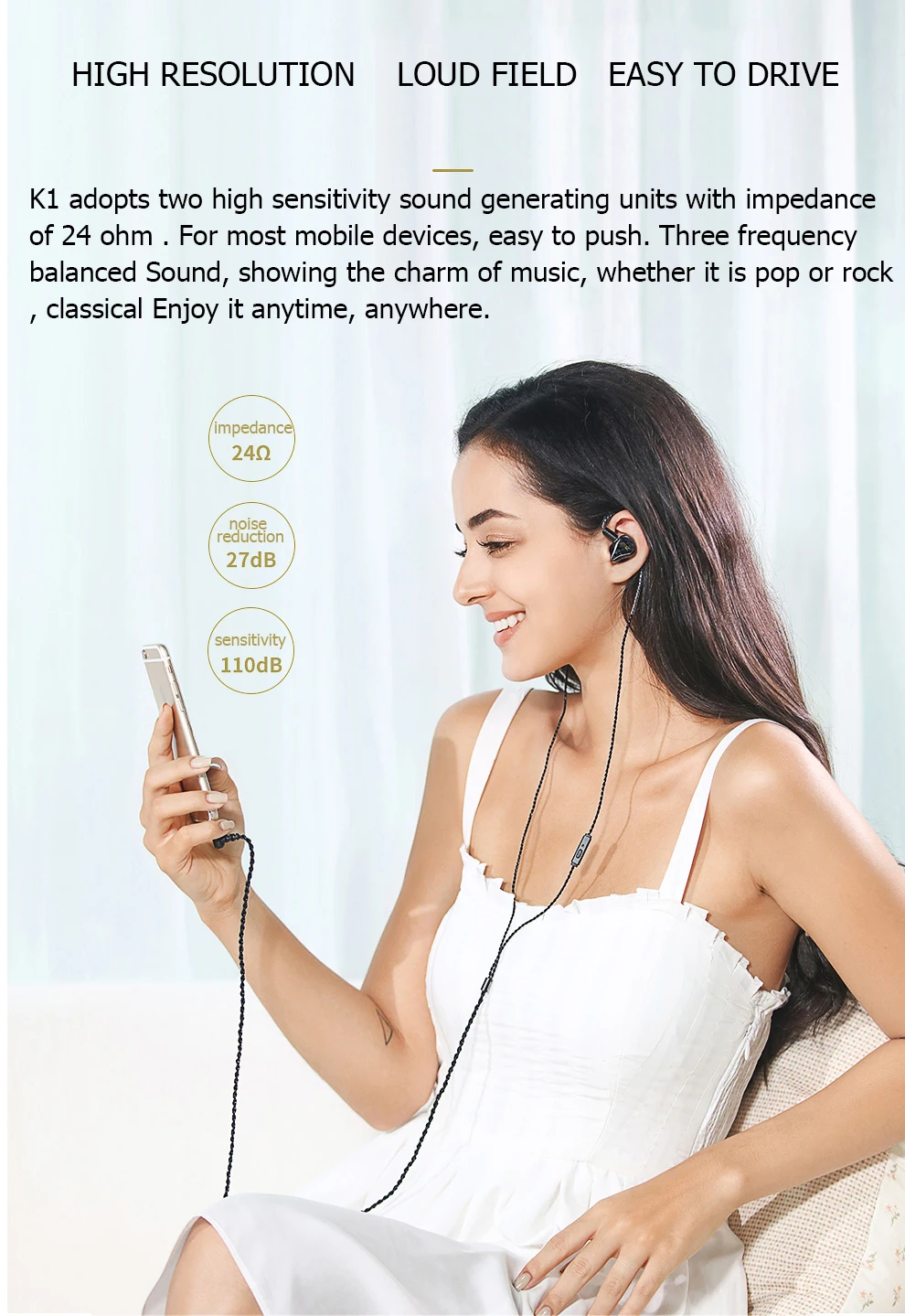 EPZ K1 BA DD гибридные проводные наушники-вкладыши с монитором, IEM Hi-Fi DJ наушники с активным шумоподавлением, 3,5 мм гарнитура с микрофоном