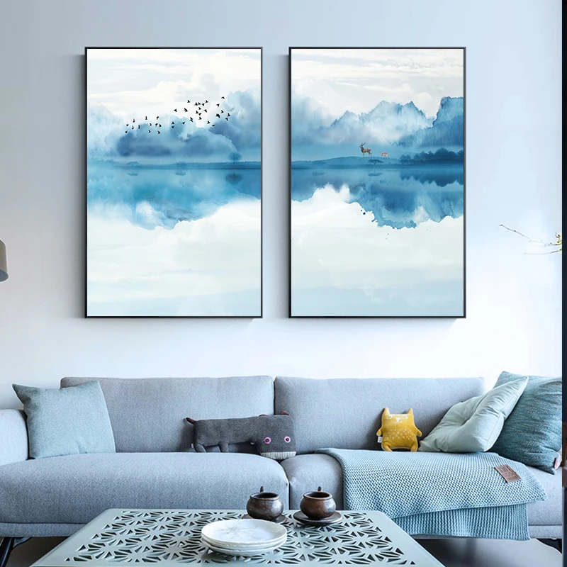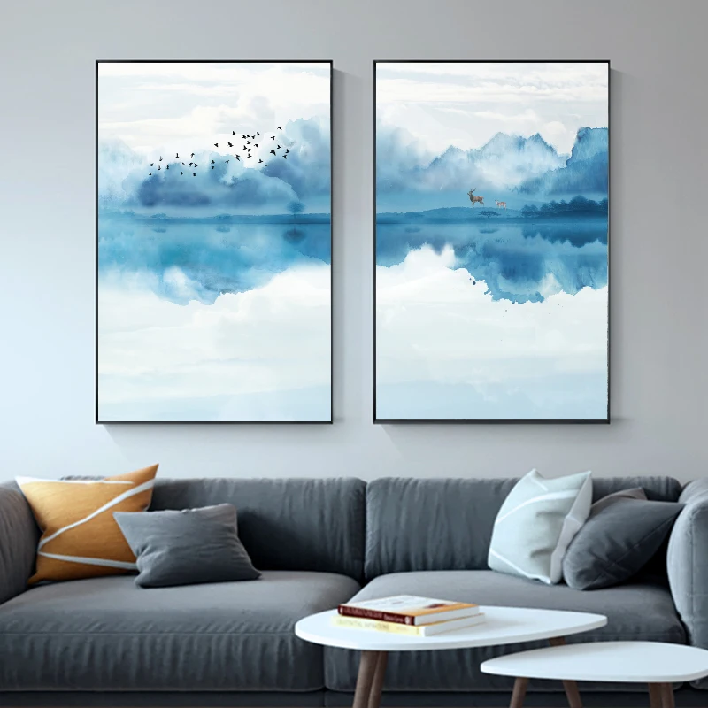 Настенная картина с изображением синих горных гальк, постер на холс...