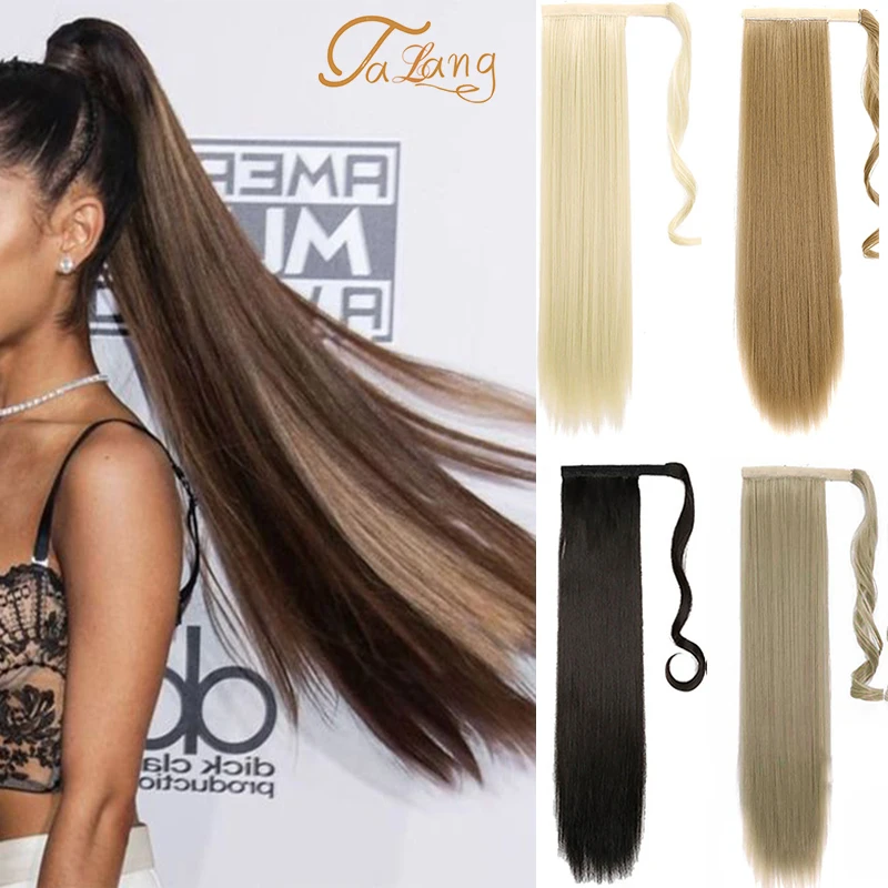 Длинные прямые накладные волосы в виде конского хвоста, термостойкие синтетические накладные волосы