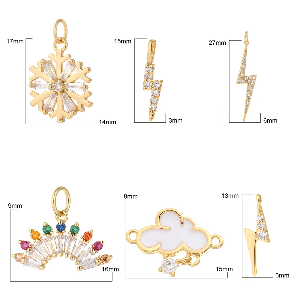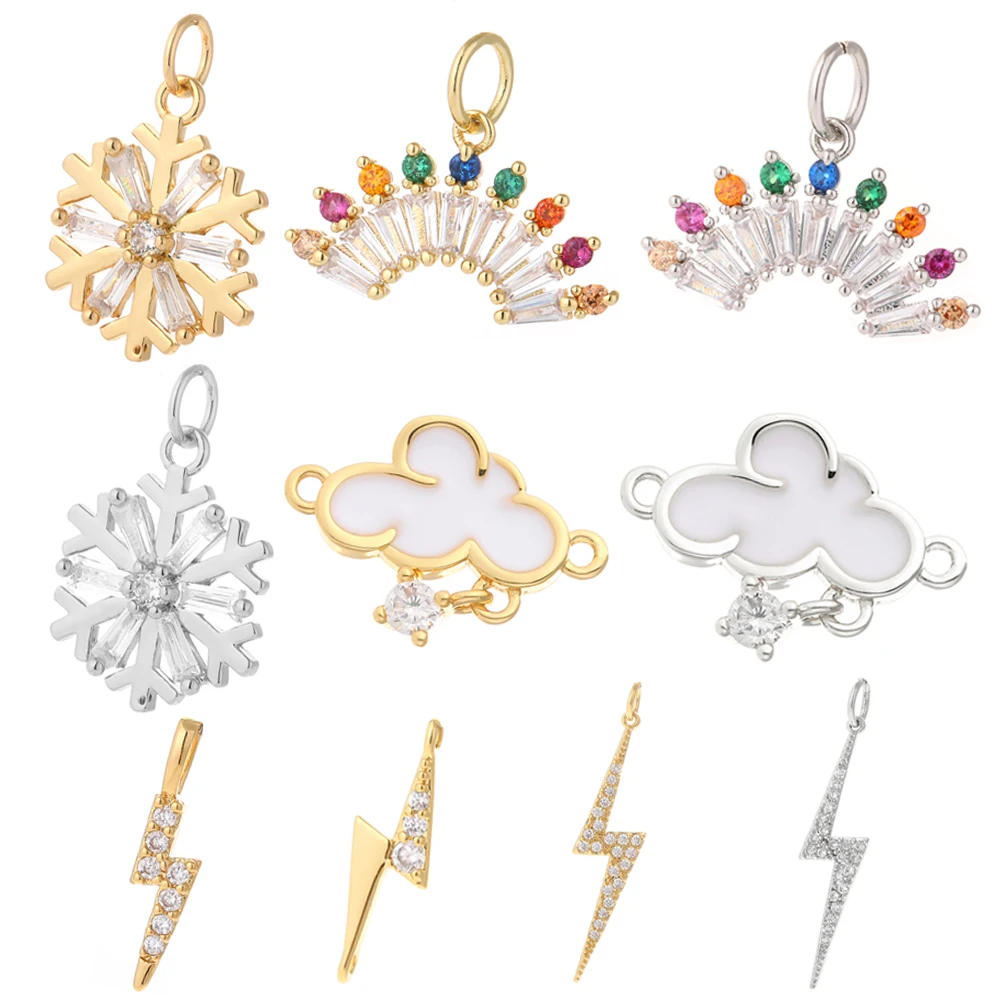 Изящные талисманы для изготовления ювелирных изделий, аксессуары для золота, радуги, молнии, облака, снега, серьги сделай сам, ожерелье, металлическая медная мозаика, фианит