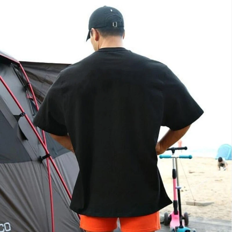 Футболка мужская с рукавами до локтя, Модная хлопковая рубашка большого размера d, Повседневная Уличная одежда для фитнеса в стиле хип-хоп, корейская мода, лето