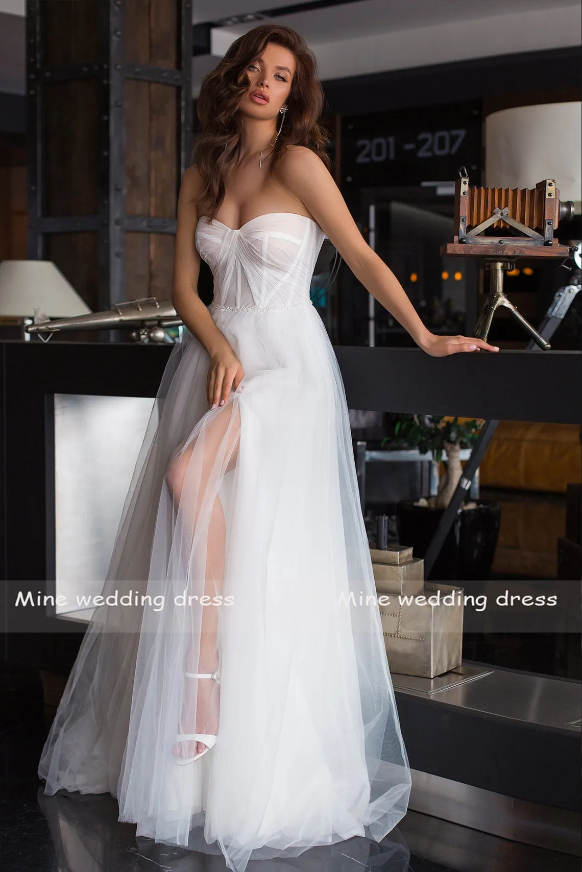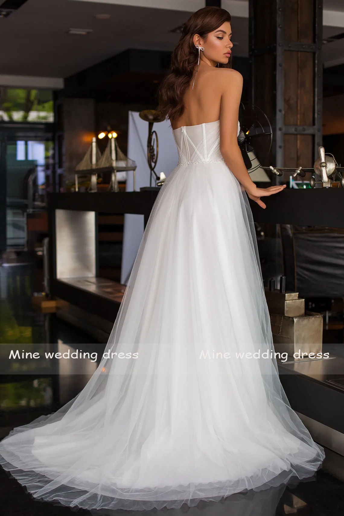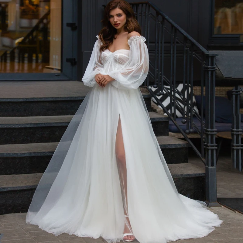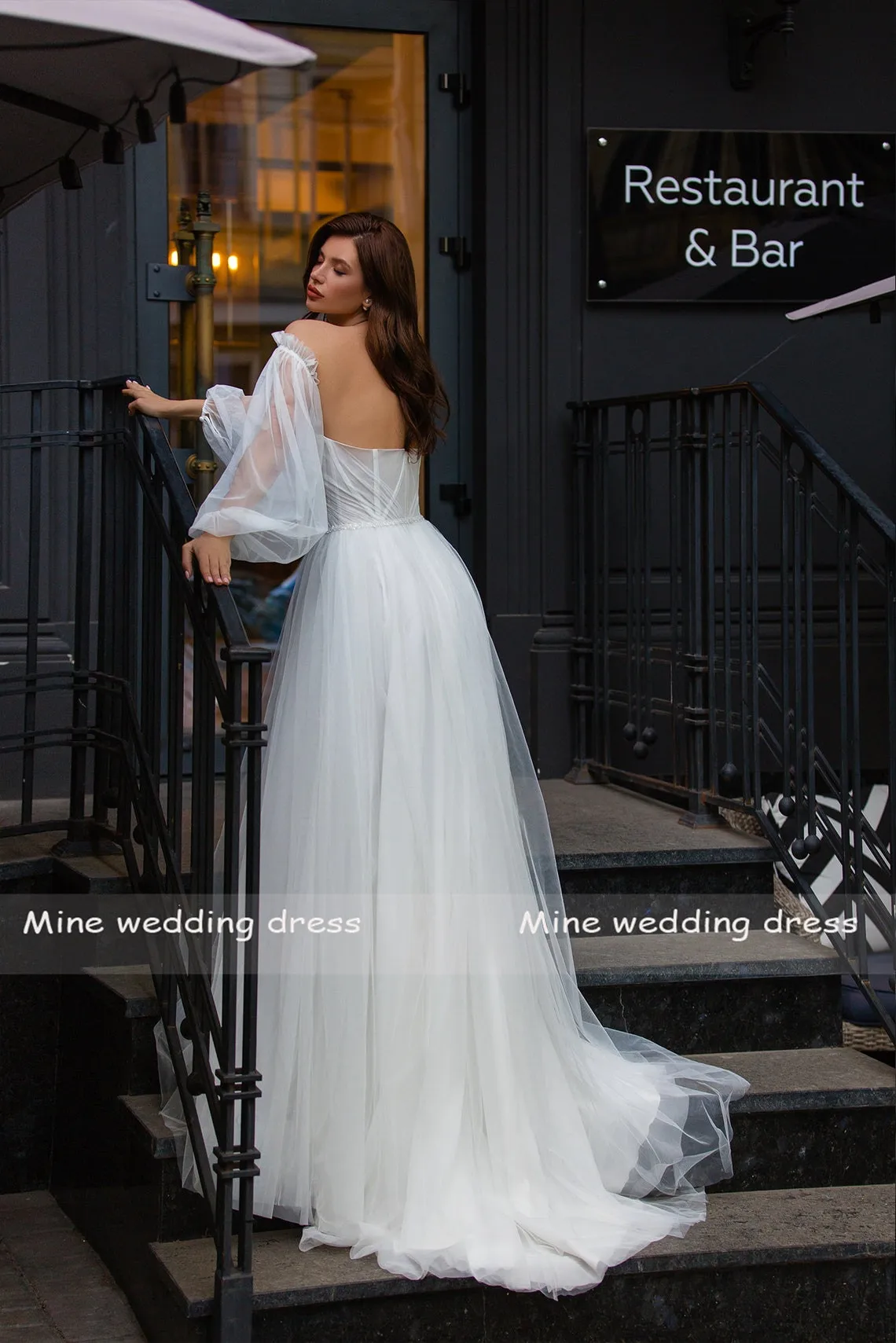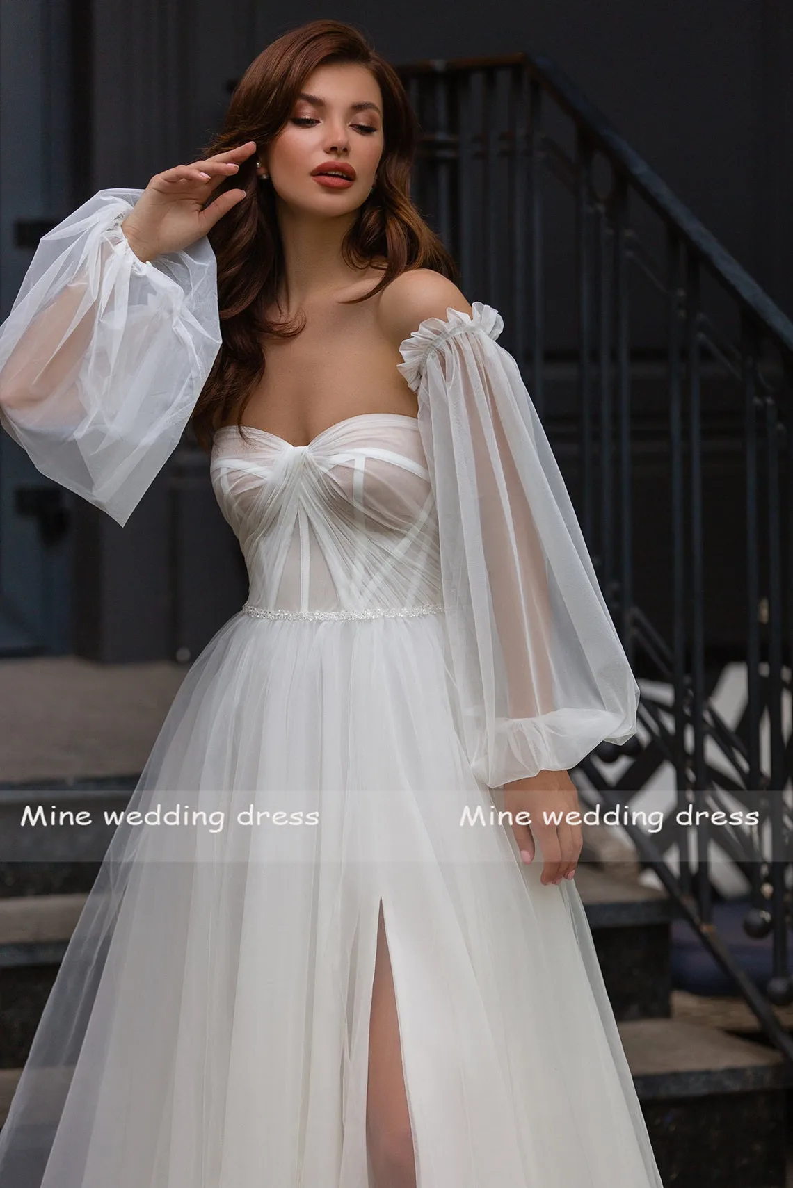Женское Прозрачное платье с разрезом сердечком, свадебное платье трапециевидной формы из фатина со съемными пышными рукавами и лентами, 2022