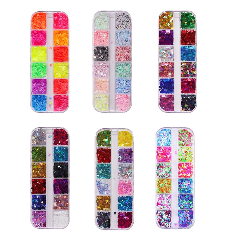 Голографические Блестки для ногтей в виде бабочки, 1 набор, 12 цвет...