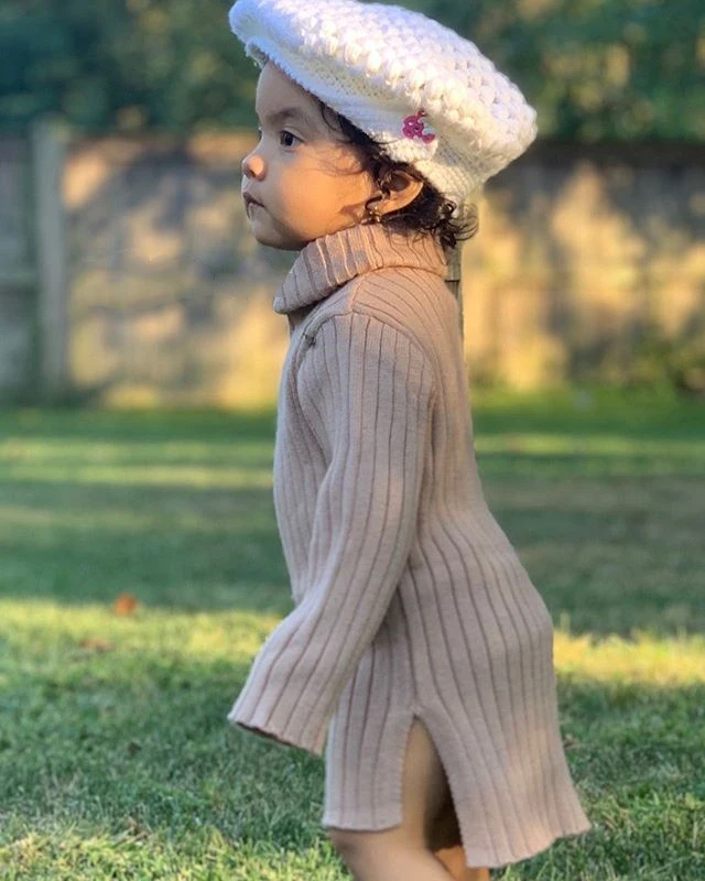 Свитер для маленьких девочек; Повседневное теплое трикотажное платье-пуловер с высоким воротником; Сезон осень-зима