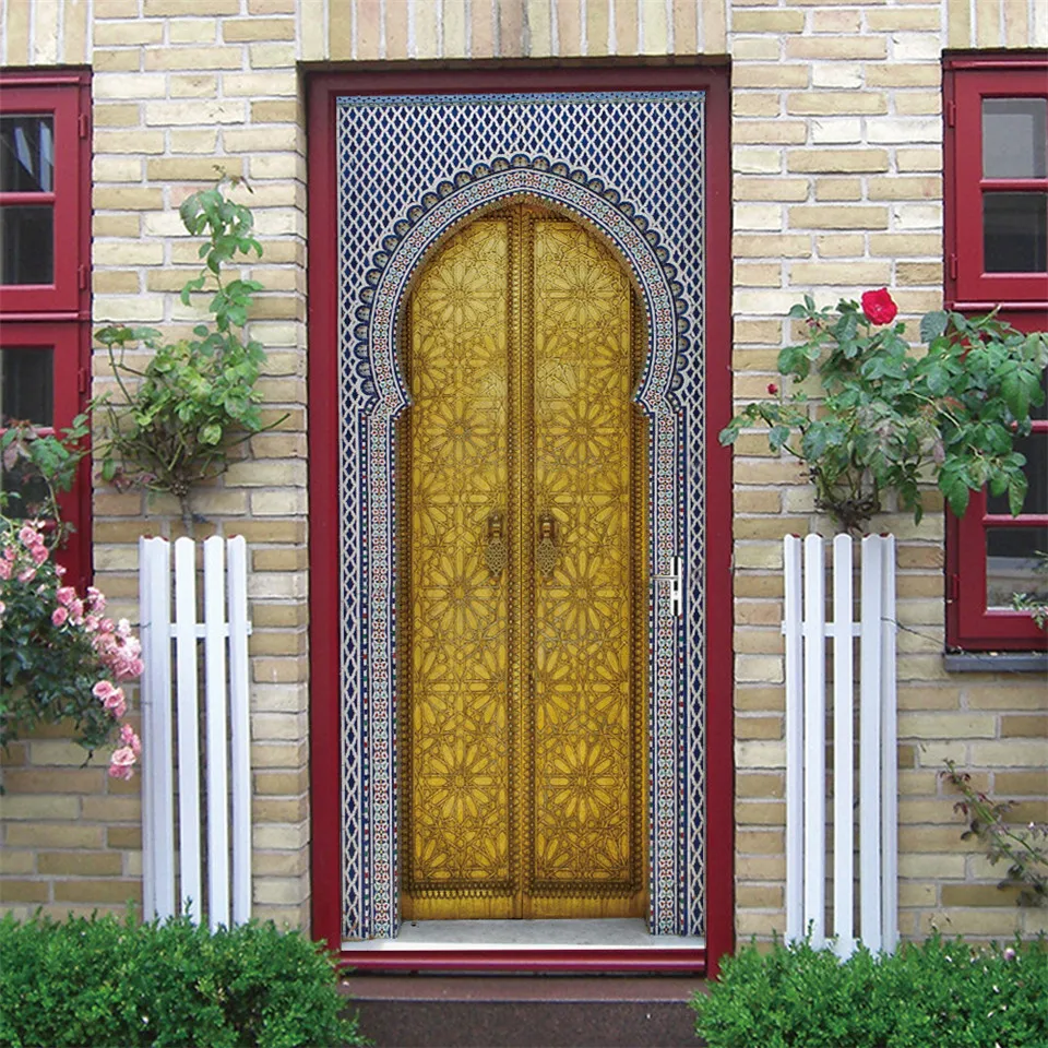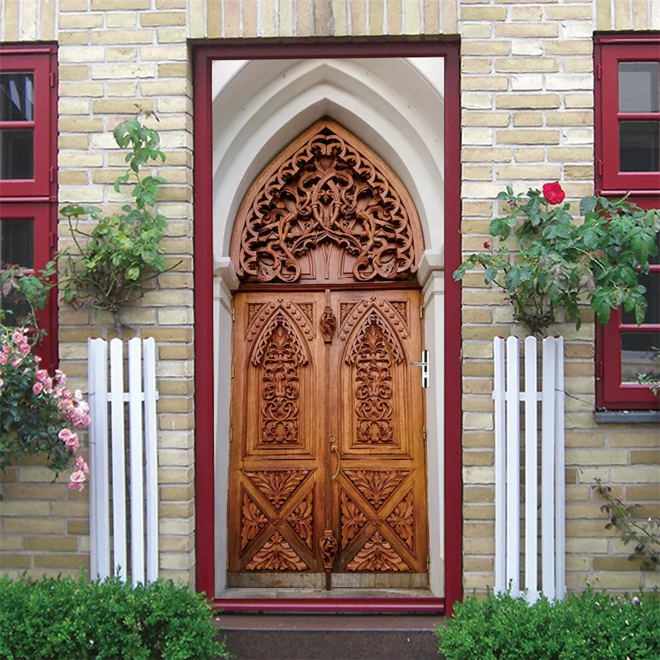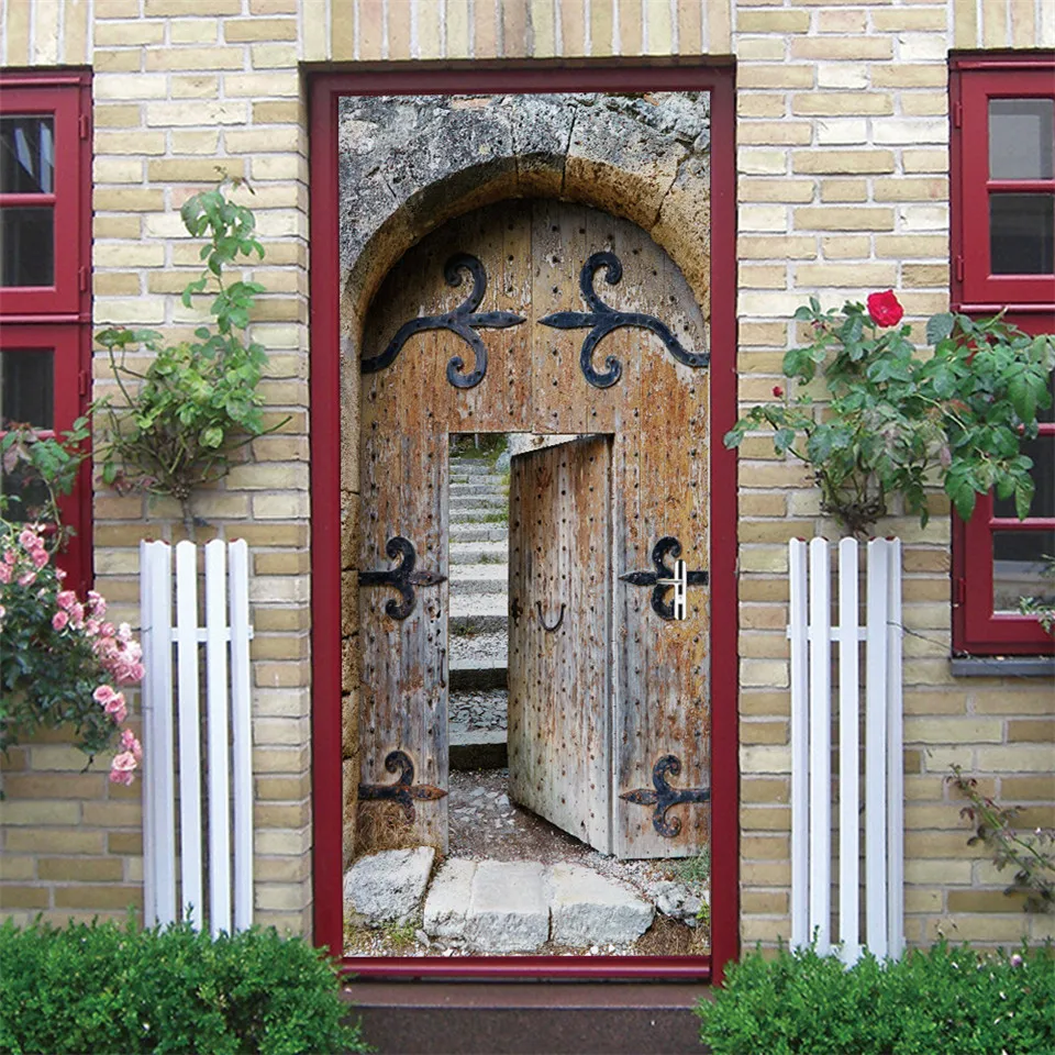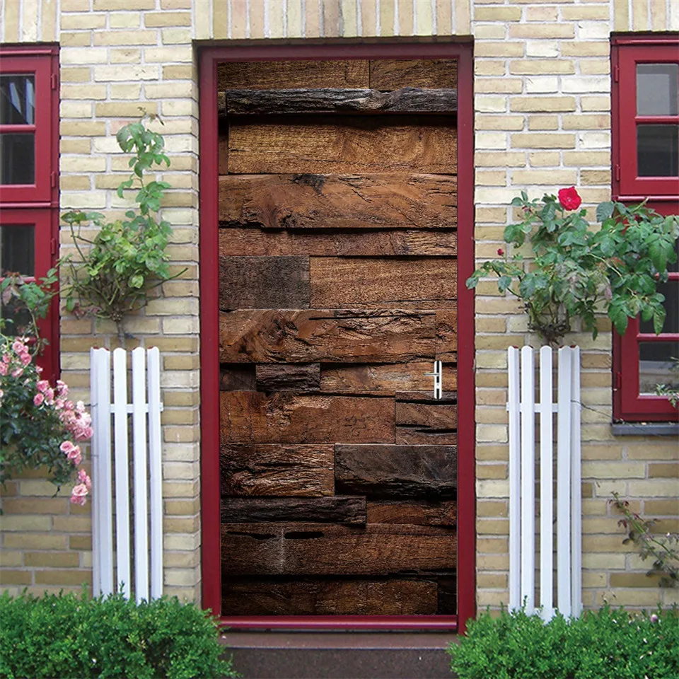Ретро деревянные наклейки на двери самоклеющиеся ПВХ 3D обои для дверей гостиная спальня домашний Декор настенный плакат наклейки на двери