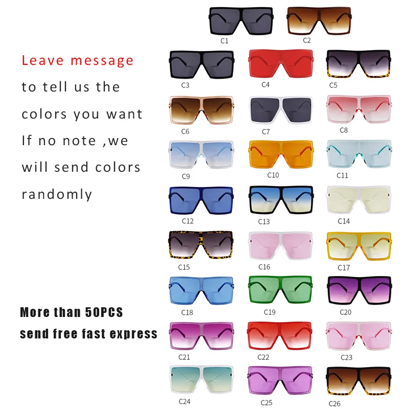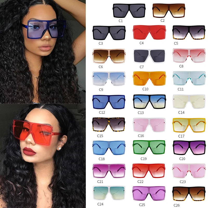 Оптовая продажа, 30 цветов, цельные квадратные большие солнцезащитные очки для женщин и мужчин, винтажные большие градиентные солнцезащитные очки, женские очки Uv400