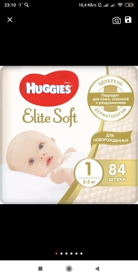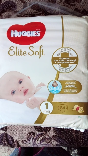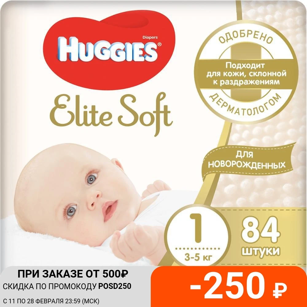 Подгузники HUGGIES Elite Soft для новорожденных 1 3-5кг 84шт