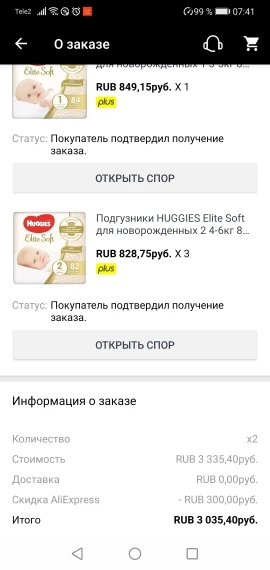 Подгузники получил. Заказал 12.04 доставили службой КСЭ до квартиры сегодня 20.04. Хотя уже 16.04 посылка прибыла в Сыктывкар, но доставили только сегодня. Но это не критично. Заказывал размеры 1, 2 и 3 по одной пачке. С промокодом 1 и 2 обошлись по 629р. за пачку, и 3-ка за 829р. В моем городе 1 и 2 стоит по акции 869р. и 3-ка 1369р. Сэкономил 1020р. Также в этом магазине заказал пачку чая, так как промокод действовал от 3тр. Чай обошёлся 216р., в супермаркете такой стоит 320р. Подгузники хорошего качества. Чай тоже вкусный и ароматный. Буду заказывать подгузники ещё, так как экономия не плохая. Рекомендую данные подгузники, а также чай.