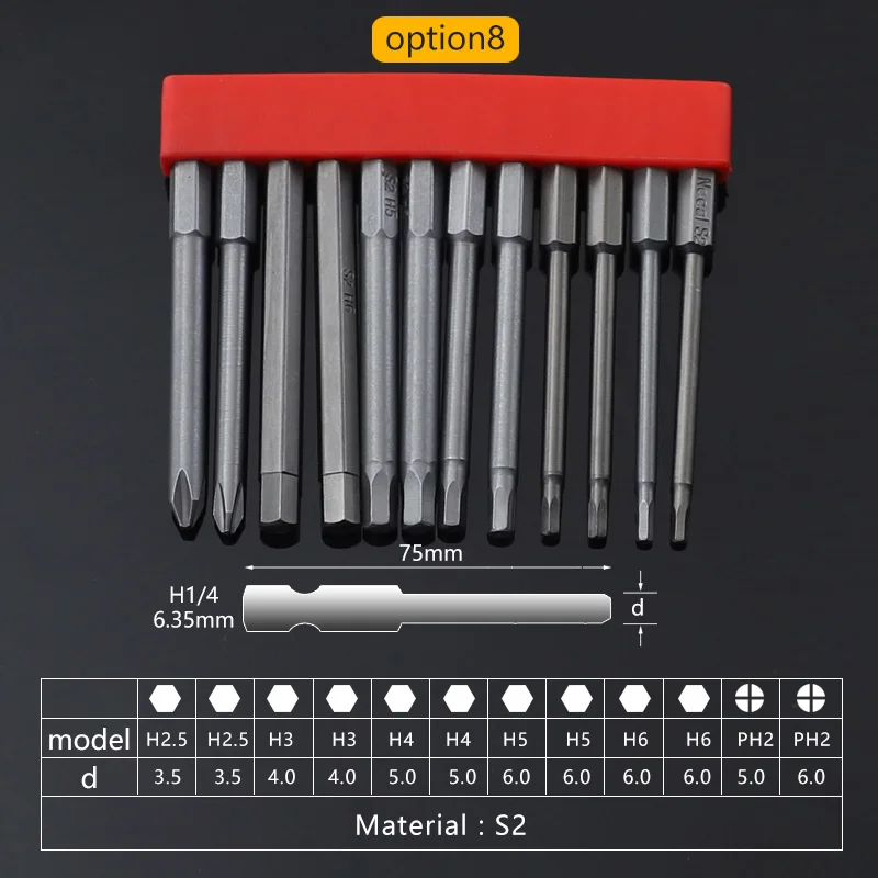 Набор отверток S2 14 дюйма с шестигранным хвостовиком, 50 мм75 мм10...