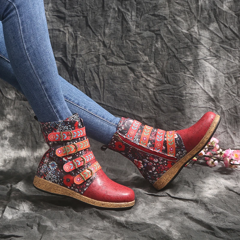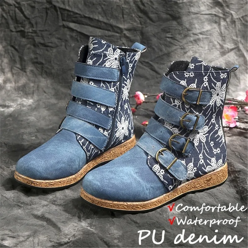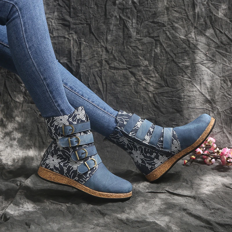 Женские ботильоны; Женская обувь; Сезон осень-зима PU размера плюс на молнии с пряжками; Большие размеры печатных Водонепроницаемый женская обувь из дышащей ткани; Ботильоны, обувь;