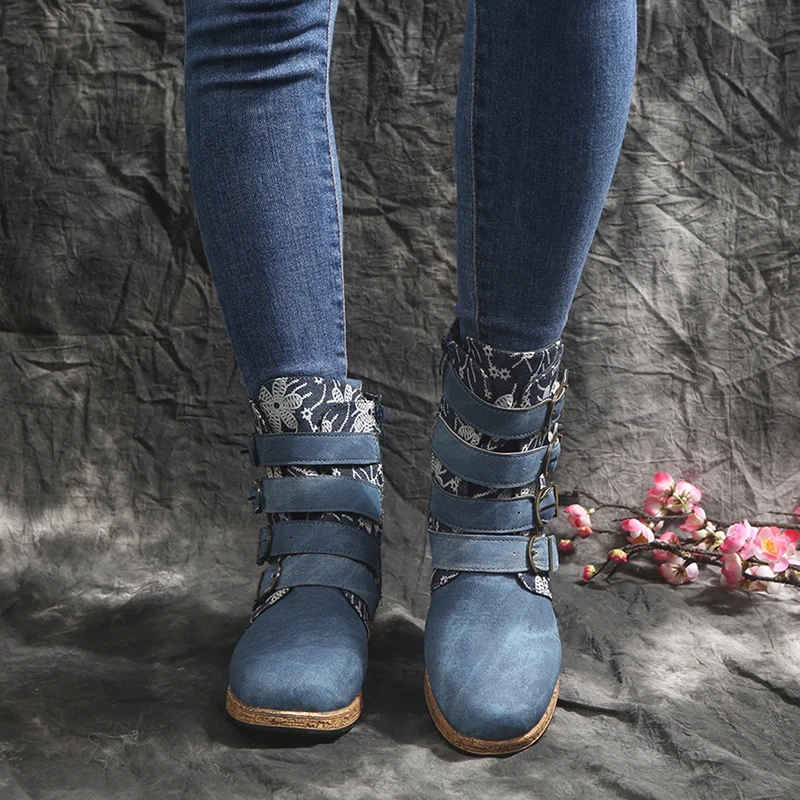 Женские джинсовые Нескользящие сапоги, повседневные Сапоги выше кол...
