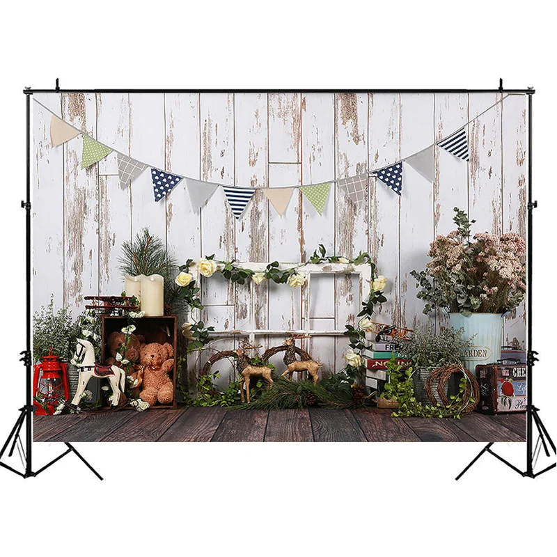 Белые Деревянные Настенные фоны для фотосъемки новорожденных детей день рождения Фотостудия Фото фоны цветы Игрушка Декор