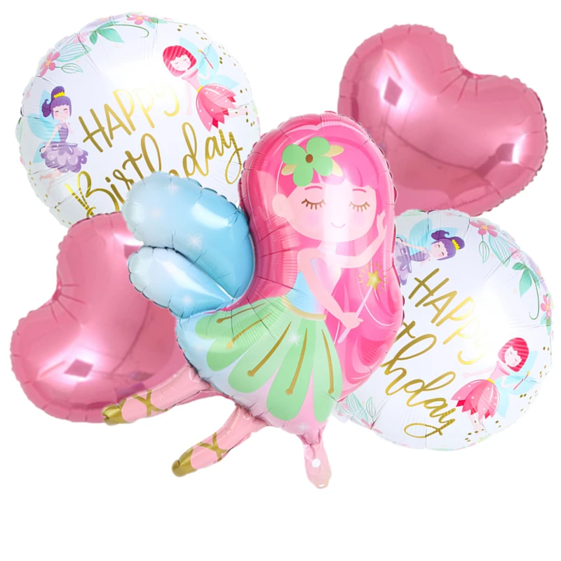 5 шт., милые сказочные воздушные шары, украшение для дня рождения принцессы, шары из алюминиевой фольги, розовые воздушные шары с крыльями