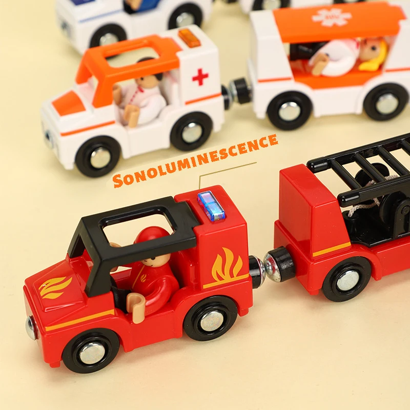 Игрушечная машина, железная дорога железнодорожные пути деревянная, со звуком, подсветильник, магнитная, пожарная машина, машина скорой помощи, деревянная железная дорога, Игрушечная машина