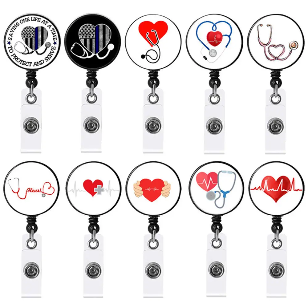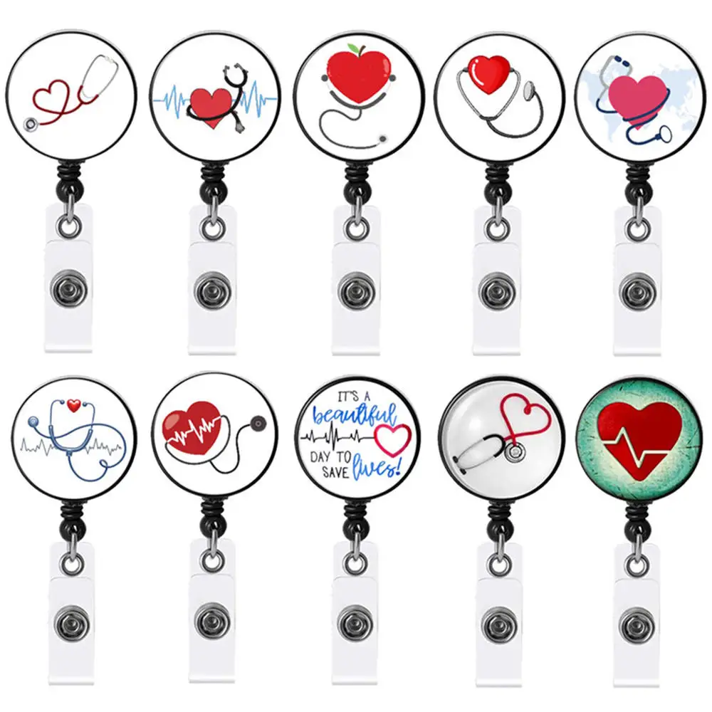 Выдвижной Значок медсестры 1 шт., зажим для катушки, милое сердце, стетоскоп, врач, держатель для ID-карты для студентов