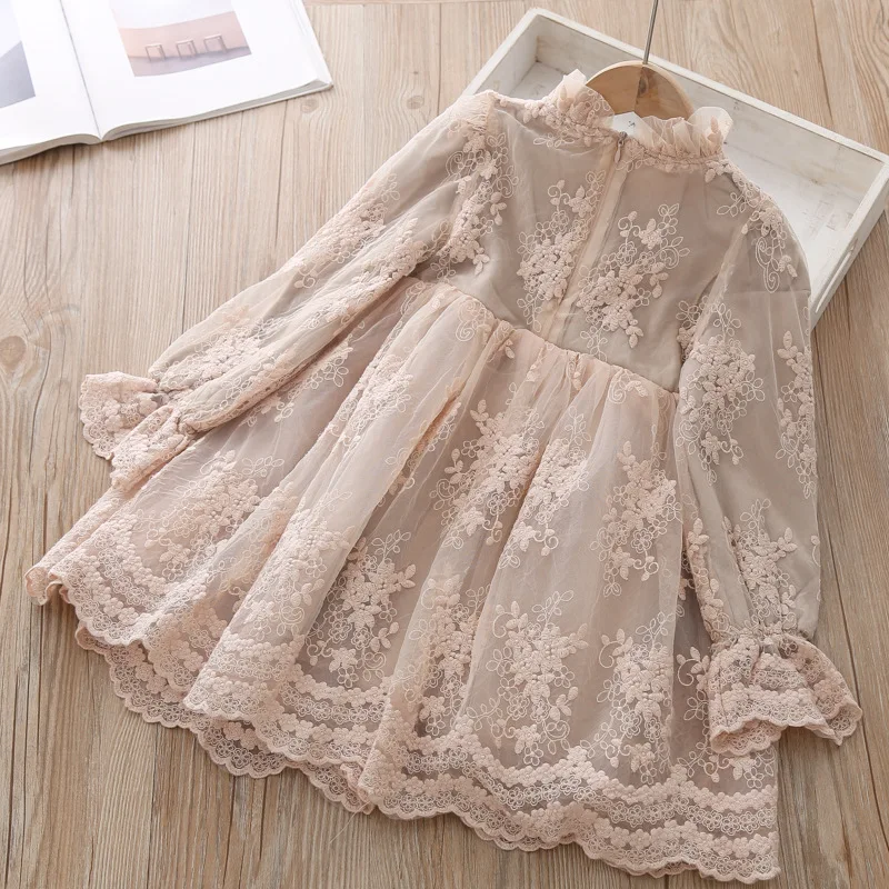 Платье для девочек, кружевное, с длинным рукавом, на Возраст 3-8 лет