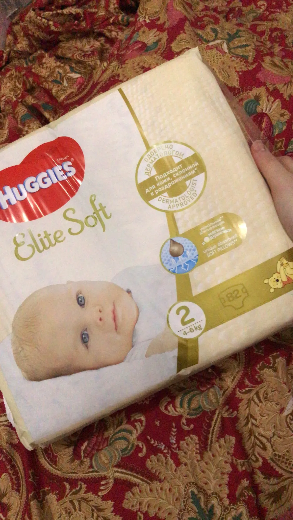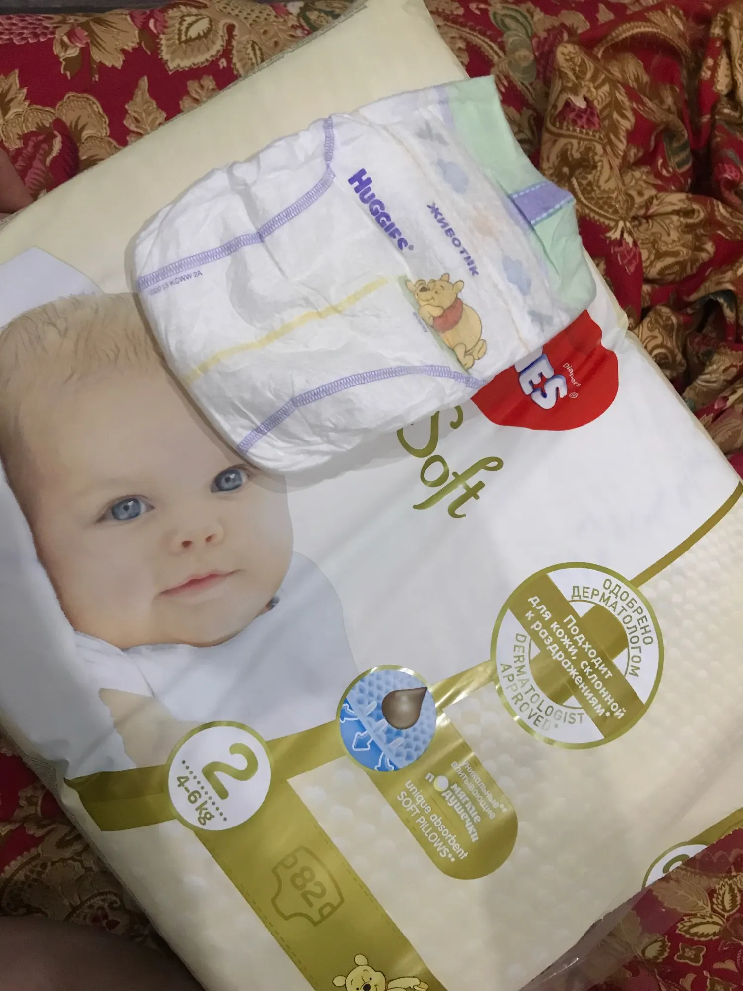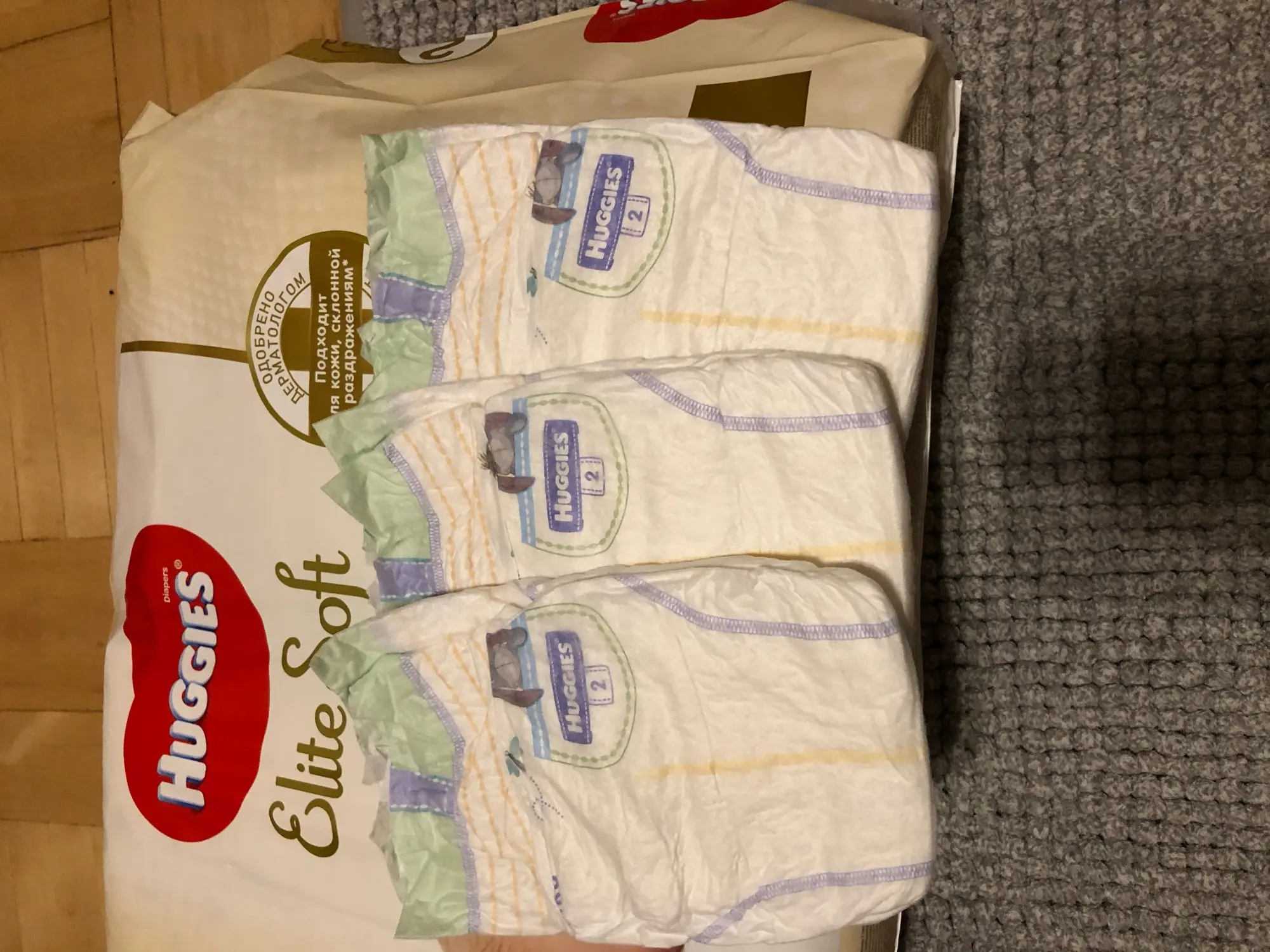 Описание точное. Упаковка не поврежденная. Со сроком годности всё окей. Брала во время распродажи за 555 рублей с копейками. В роддоме давали пробники, раздражения не вызвали. Имеют небольшой аромат, но не навязчивый. Мягкие на ощупь, плюс есть кармашек от протеканий на спинке. По опыту могу сказать точно что они не протекают.. спали в них 4 часа(учитывая что малыши часто ходят). Доставил курьер, 12.11.20 ближе к ночи был сделан заказ, 13.11.20 вечером подгузники уже были у меня в руках! Молниеносная доставка(хотя наверное это только по Москве так), но все равно спасибо! Рекомендую