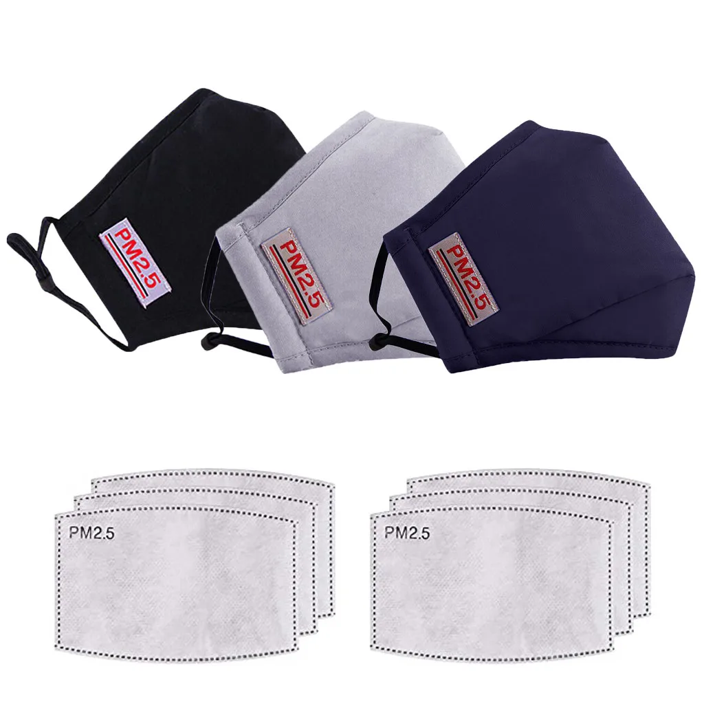 PM2.5 многоразовые хлопковые маски для лица, рта крышка фильтра 3 + 6 шт. модные пылезащитный Моющиеся Многоразовые Хлопок Рот маска для лица