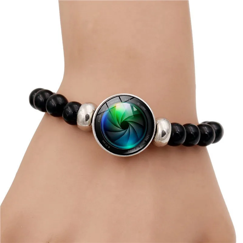Роман объектив фото эластичный браслет из бисера Камера объектив фон для фотосъемки влюбленных Стекло оснастка браслет с кнопками для Для мужчин Пользовательские Браслеты