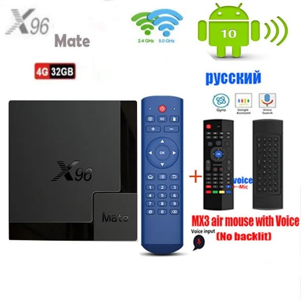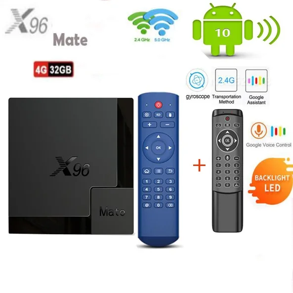 ТВ-приставка X96 Mate android 10, 4 + 64322,45G ГГц, Wi-Fi, 4K, G00gle, 100 м, ИК-пульт дистанционного управления