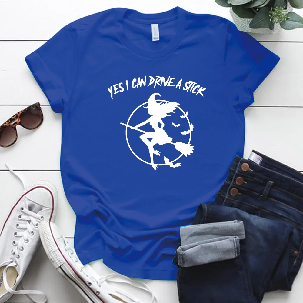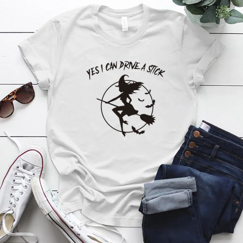 Футболка На Хэллоуин с принтом «Да я могу управлять палочкой», праздничные футболки с коротким рукавом, забавные женские футболки, S-5xl