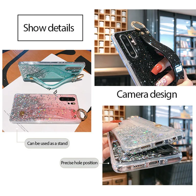 Блестящий чехол с ремешком на запястье для Huawei P40 Lite P30 Pro,...
