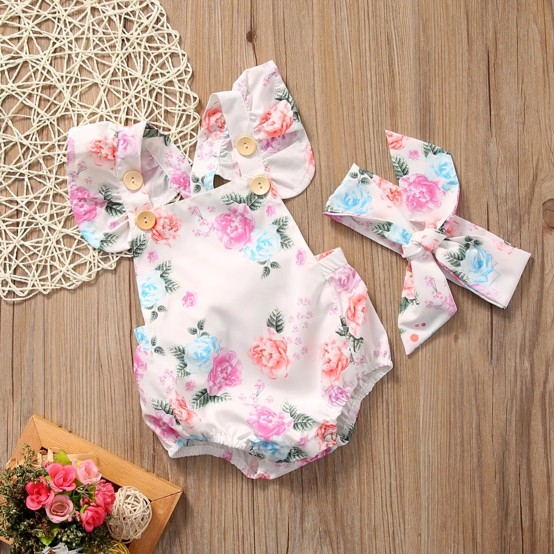 Боди с цветочным рисунком для новорожденных и девочек + летний костюм