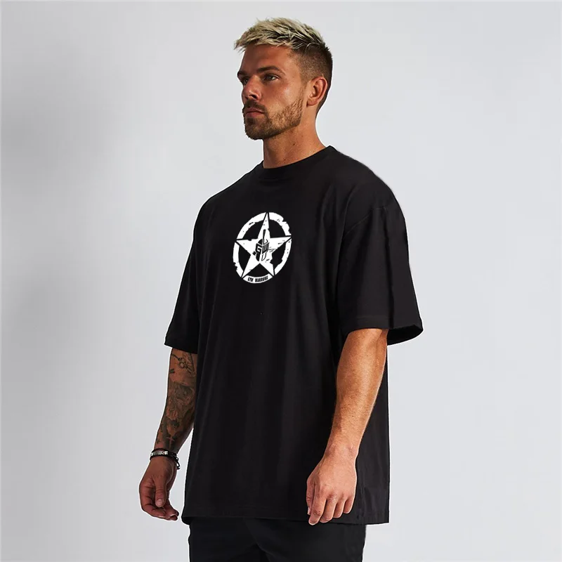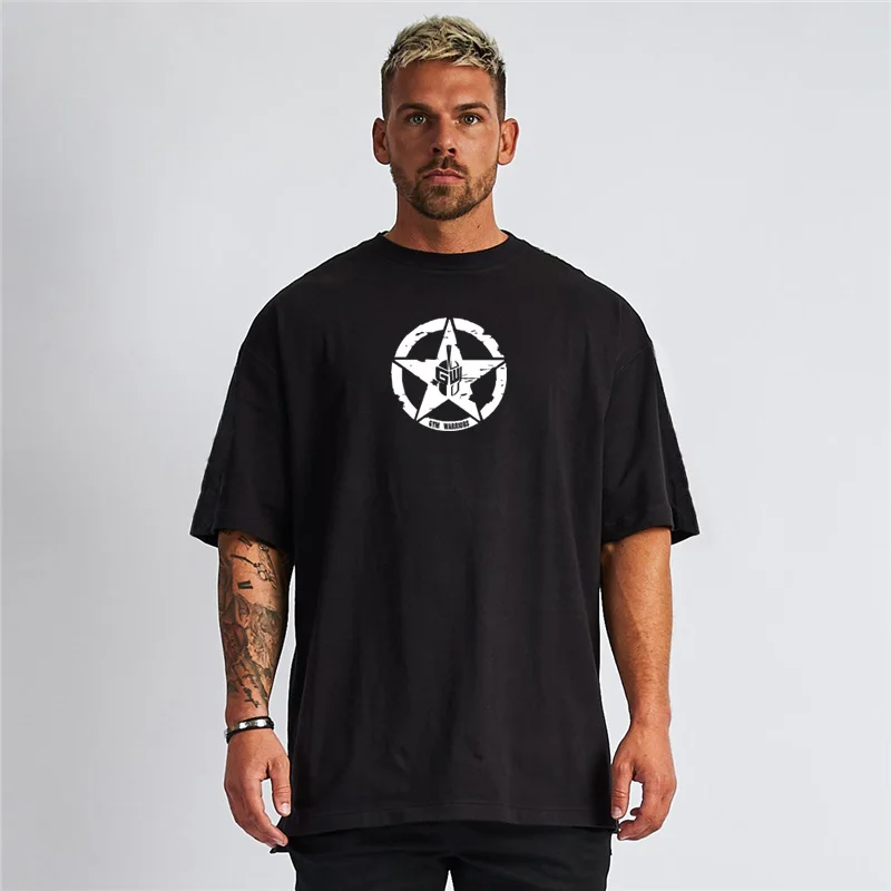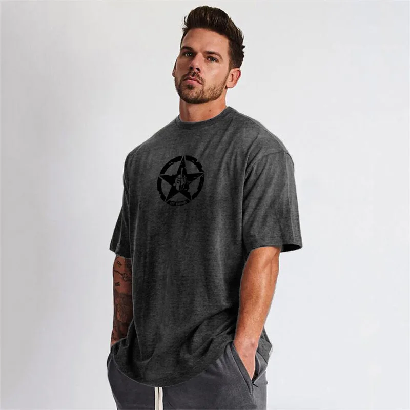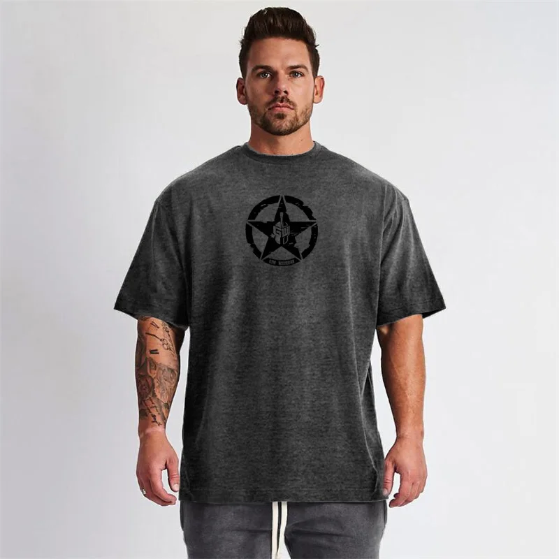 Футболка мужская оверсайз с коротким рукавом, модная повседневная Свободная рубашка с открытыми плечами для фитнеса, топ для тренажерного зала и бодибилдинга, лето