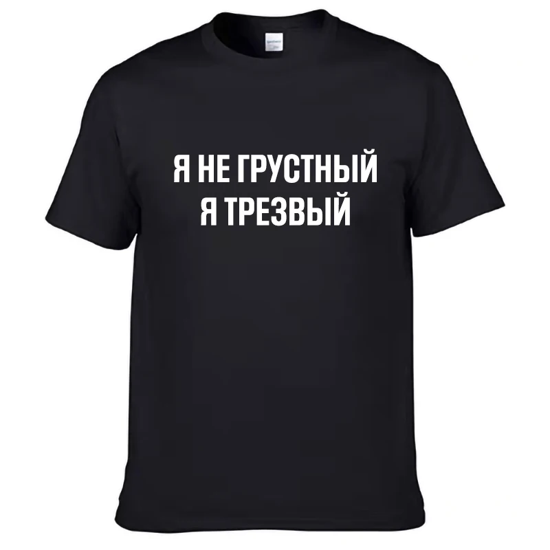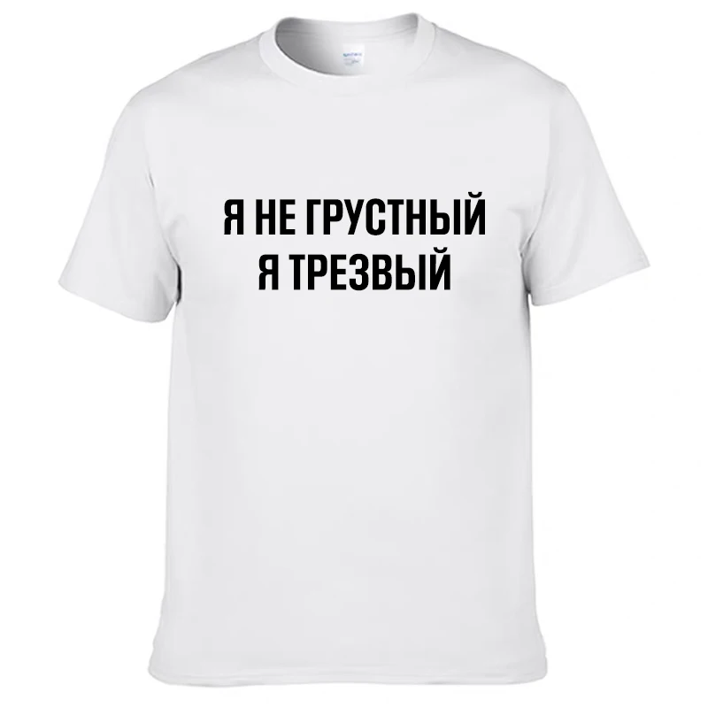 Мужские футболки, 100% хлопок, Забавный принт на русском языке"Я НЕ ГРУСТНЫЙ Я ТРЕЗВЫЙ", повседневные мужские топы с круглым вырезом, унисекс, футболка с коротким рукавом, женские футболки