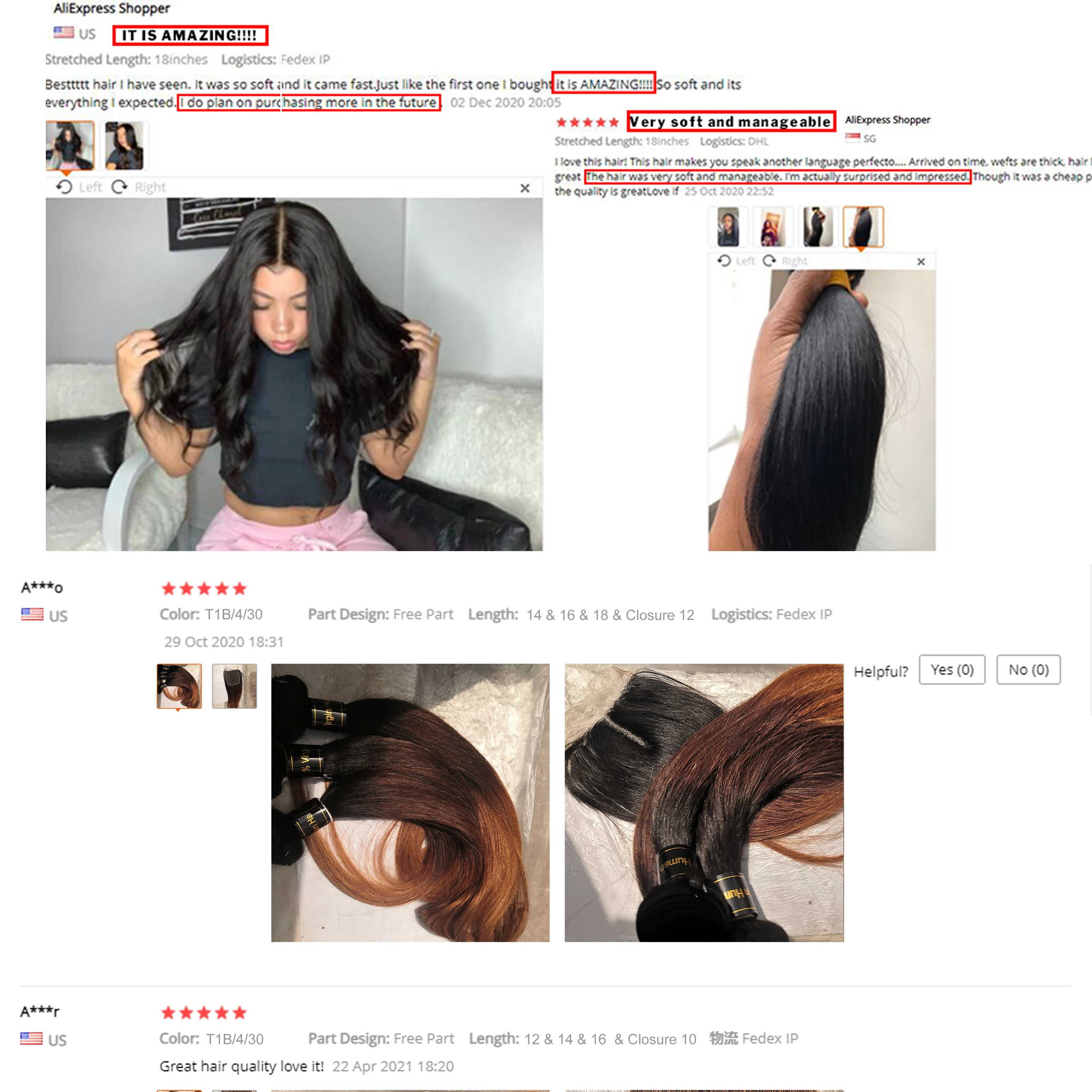 Люблю все эти волосы. Я впервые заказал волосы на Aliexpress, и я очень доволен. Закажем снова. Я также заказываю другие стили и текстуру, и я очень доволен. Волосы мягкие, не запутываются и не линяют. Обязательно закажем снова. Люблю эту компанию.