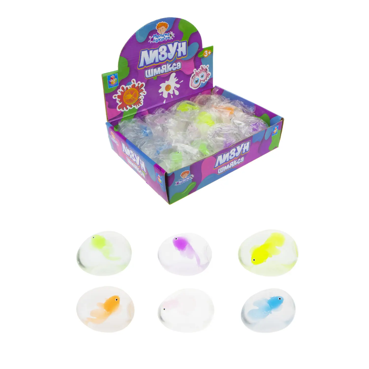 Игрушка-антистресс Жмяка 1TOY Мелкие пакости - шар с рыбой, воксе ЦЕНА ЗА 1 ШТ.