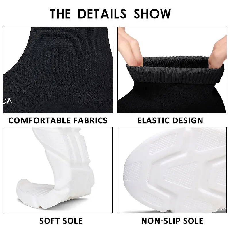 Женские кроссовки, черные носки, обувь, сапоги, толстая подошва, дышащая повседневная обувь унисекс, Zapatillas Mujer, короткая плюшевая прогулочная обувь
