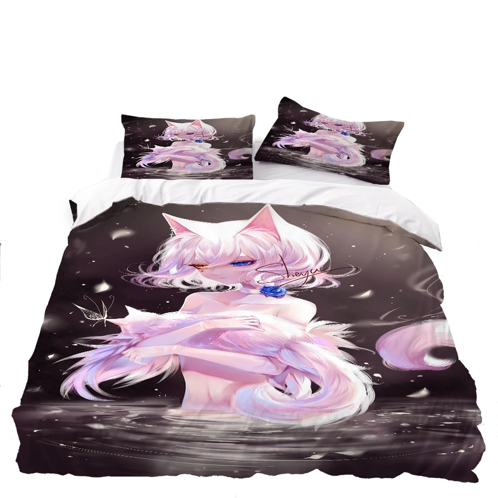 2/3 шт., роскошный пододеяльник с изображением лисы в стиле японского аниме, набор постельных принадлежностей для девочек, комплект роскошных пододеяльников для спальни с 3D принтом, пододеяльник для кровати с изображением девушки из мультфильма