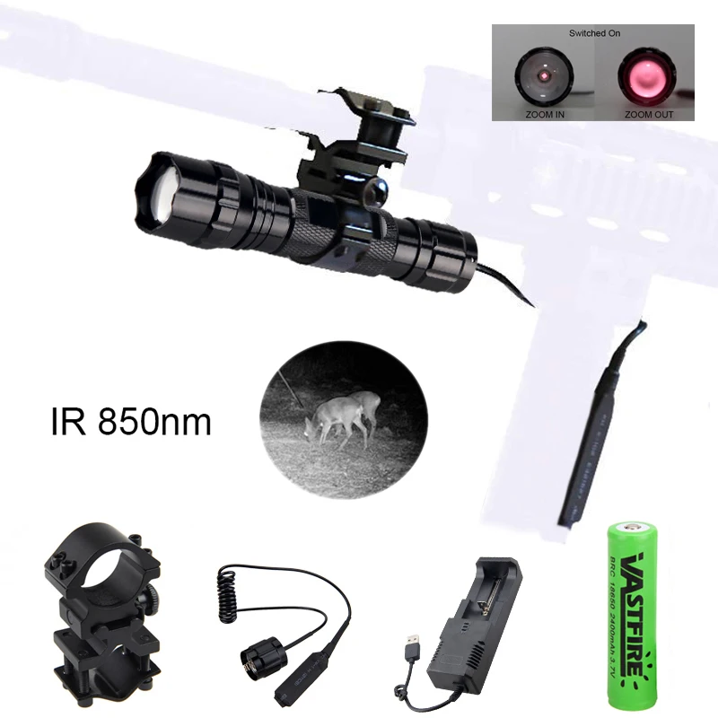 Фонарь 18650 нм, 5 Вт, светодиодный инфракрасный фонарь для охоты с ночным видением, тактический фонарь с креплением на ружье + переключатель + зарядное устройство +