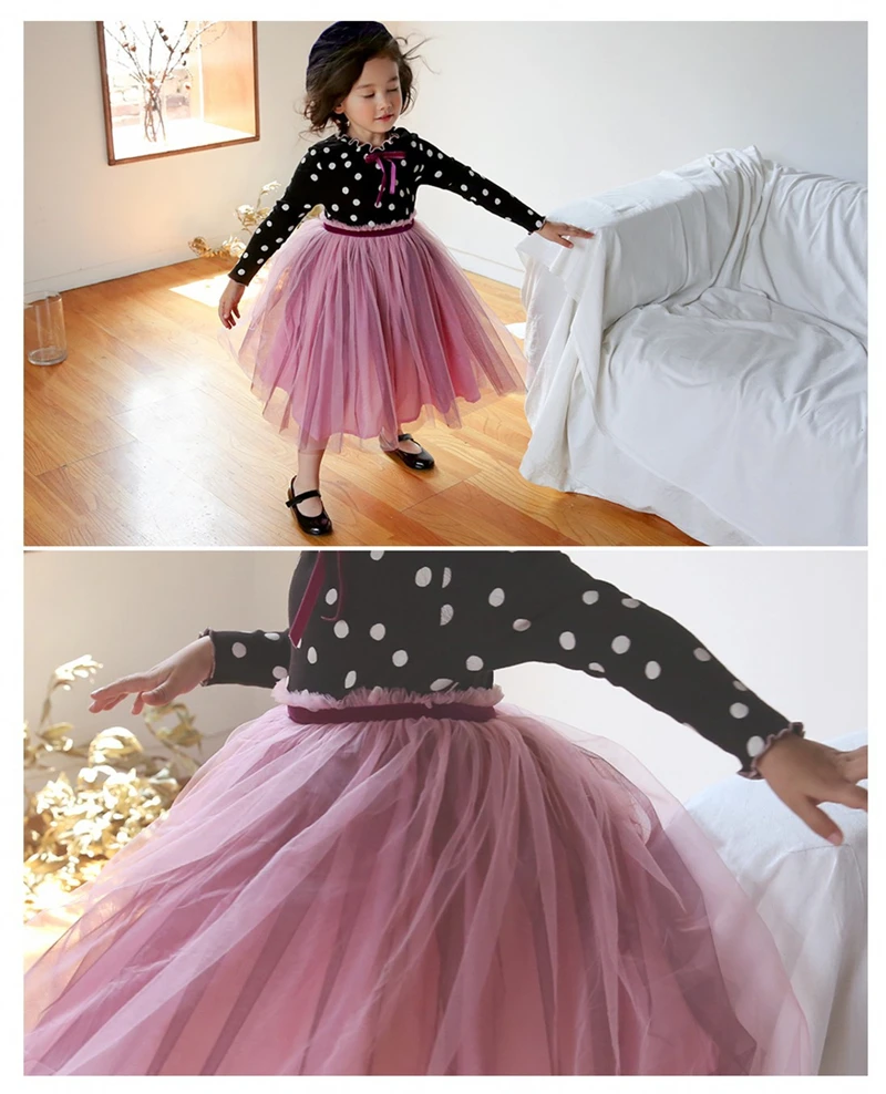 Детские платья для девочек, осеньзима, Детская Тюлевая пачка с длин...