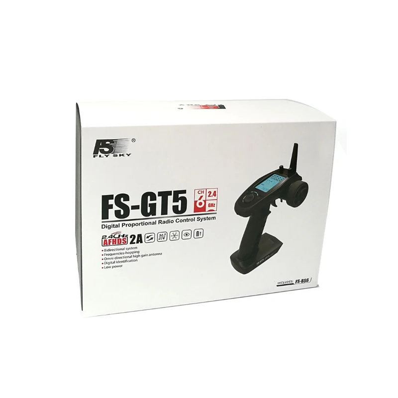 GT5 передатчик с использованием 2,4 ГГц AFHDS 2A системы, при сильных активных и пассивный rfid защита от помех. С FS-BS6 приемником, выход 6 каналов, совместимые модели автомобилей, лодок и других моделей.
