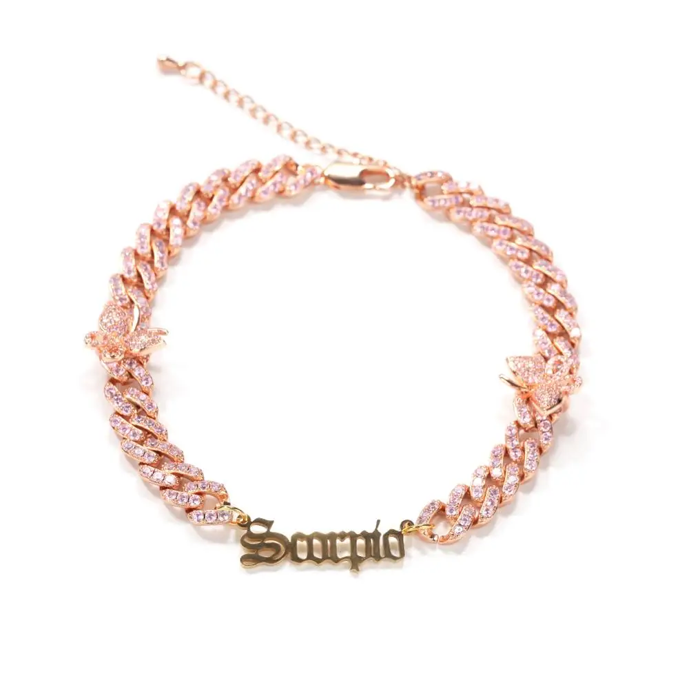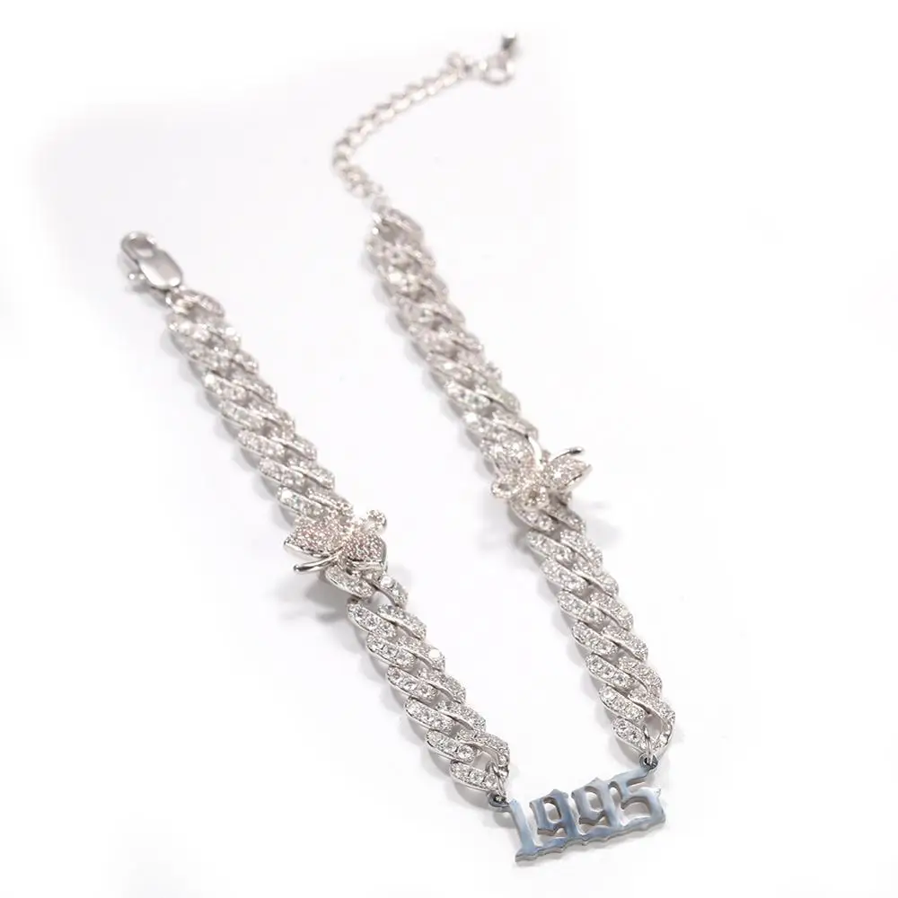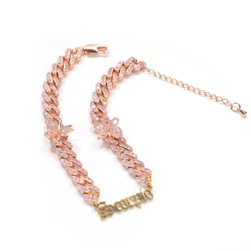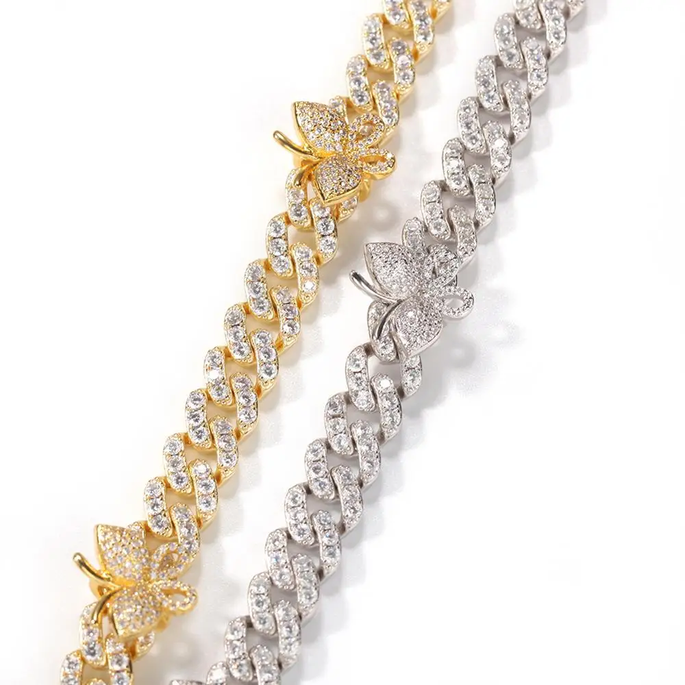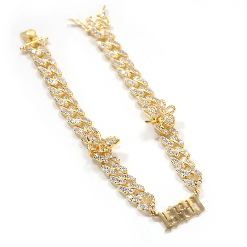 Цепочка Из Нержавеющей Стали 1990-2000, Майами, 9 мм, с бабочкой 9 дюймов, позолоченная, роскошная, медная, с кубинским цирконием
