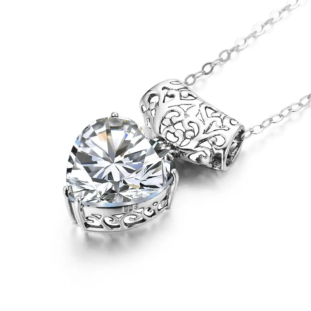Szjinao Серебряный кулон для женщин из натуральной кожи 925 пробы Серебряное ожерелье с бриллиантами подвески в виде сердца модные ювелирные изделия ручной работы, свадебные подарки
