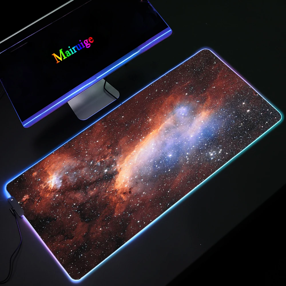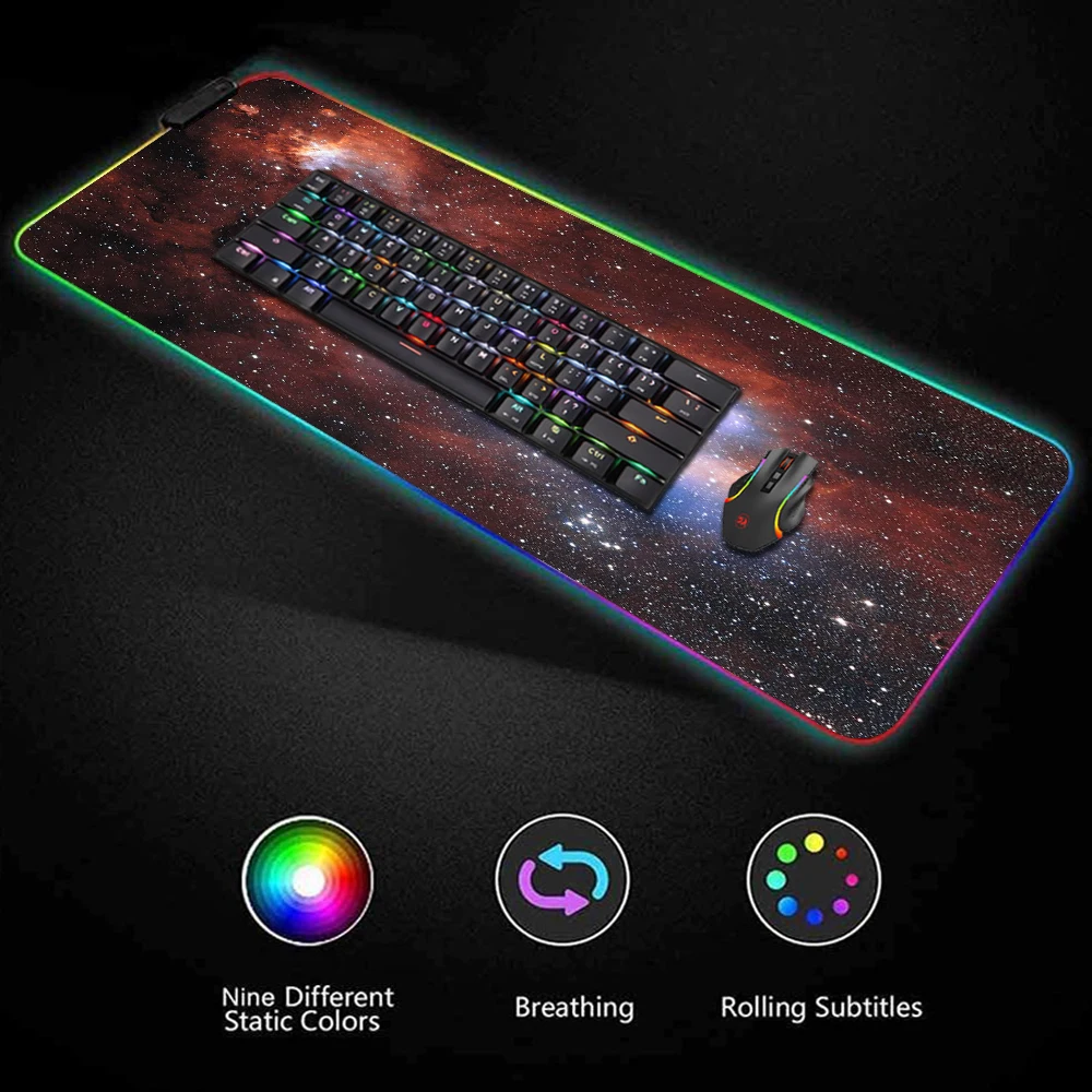 Коврик для мыши большой RGB Вселенная звездное поле туман Космос Туманность коврик для мыши светодиодный компьютерный коврик DIY пользовательский финальный фантазийный коврик для мыши Настольный коврик