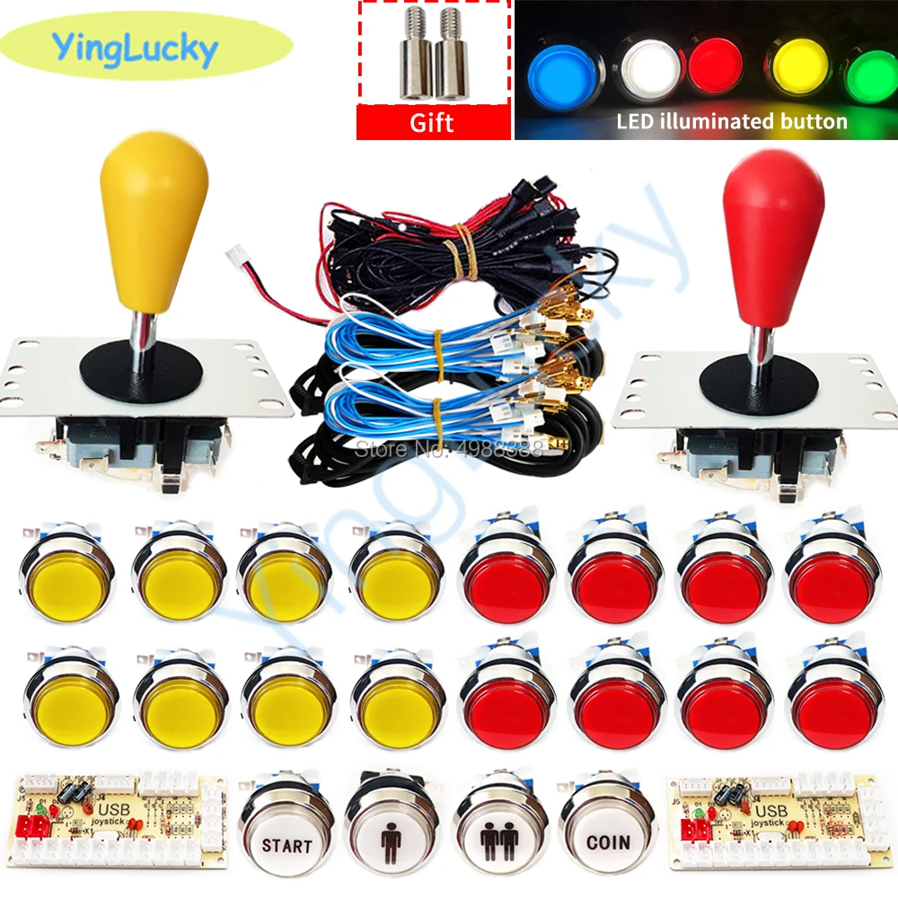 Набор для самостоятельной сборки, аркадный набор, USB-кодировщик на 2 игрока с джойстиком SANWA светодиодный светодиодная Посеребренная кнопка для ПК и Raspberry Pi MAME