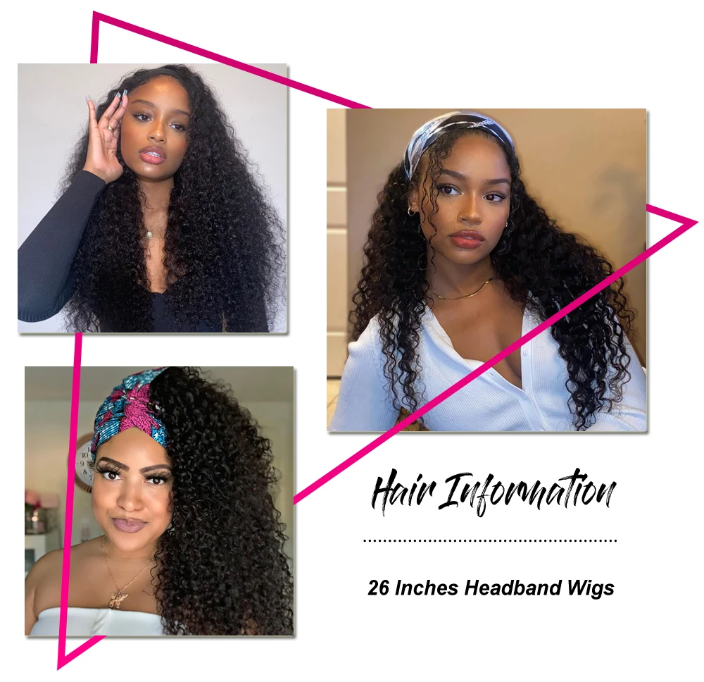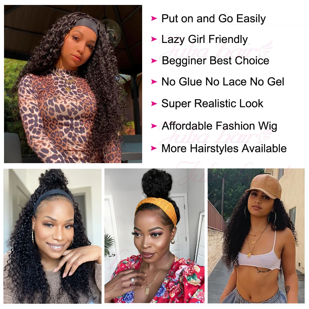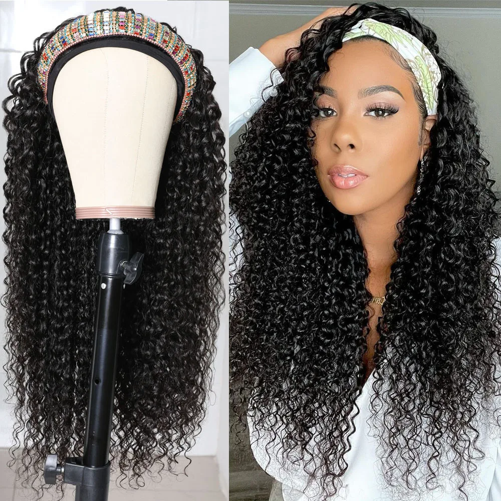 Парик из парик с головной повязкой натуральных кудрявых волос, Ali Julia, манекен для шарфа парика натуральные V-образные волосы