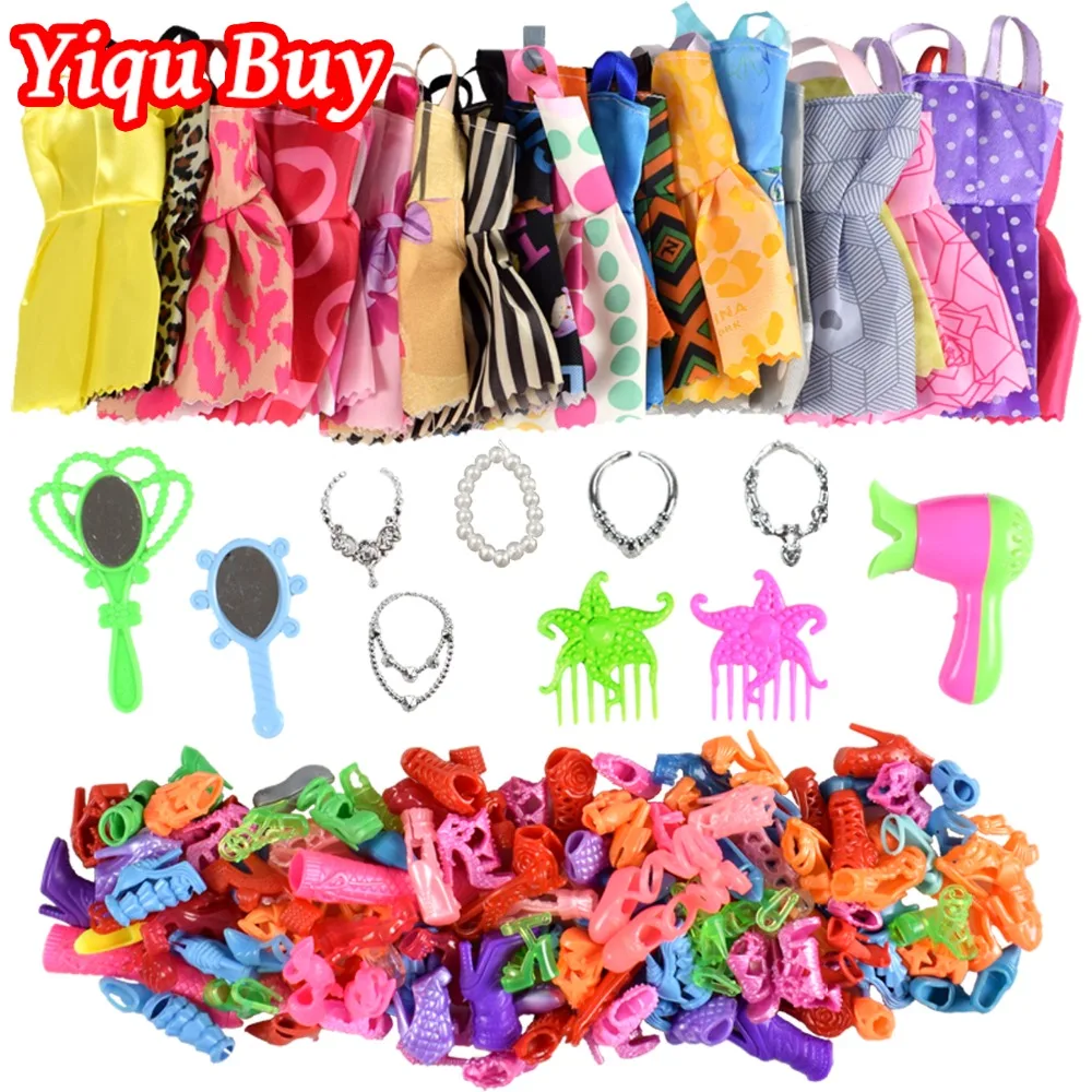 30 шт.компл. аксессуаров для кукол = 10 кукольной одежды + 2 зеркала с косметическим эффектом + 2 расчески + 10 пар обуви + 5 ожерелий + 1 Кукольный Фен