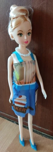 Он прибыл быстро, качество довольно плохое, потому что это пластиковая ткань, но по цене этого достаточно, чтобы дети могли играть. Приходят много платьев и обуви, которые можно комбинировать.