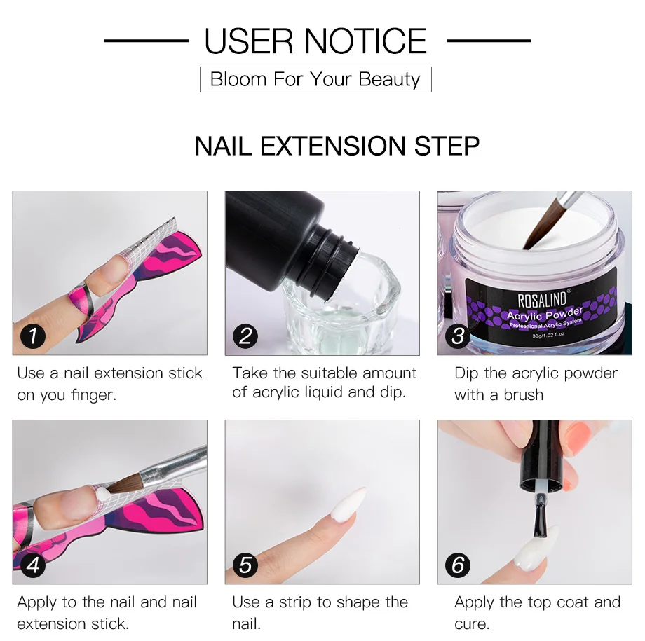 Набор акриловых порошковых ногтей ROSALIND, полимерный гель для наращивания ногтей, резьба по Гелю, щетка для маникюра, набор акриловых порошковых ногтей