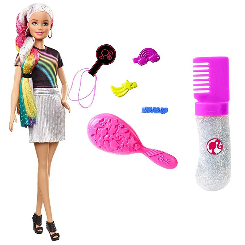 Модная Кукла Барби, радужные блестящие волосы с аксессуарами и одеждой, игрушки для девочек, модные куклы, модные куклы